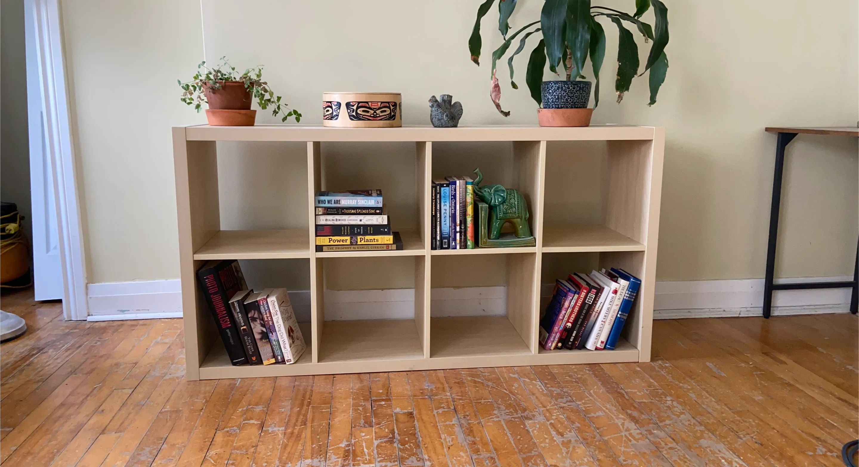 8-cube storage unit from IKEA. 58”x30”. Ideal for books or display items. Simple, functional design. Gently used, located on 2nd floor.