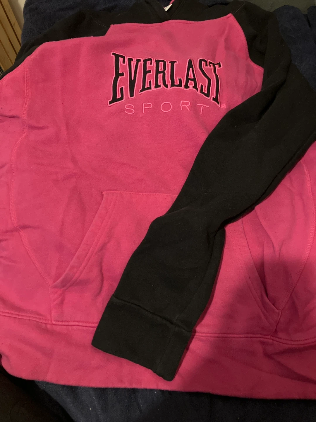 Selling an Everlast Sport hoodie! It's a vibrant pink with black sleeves and features the Everlast logo on the front. Perfect for workouts or casual wear!