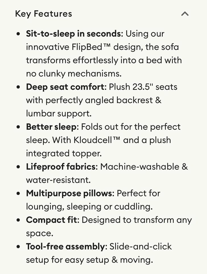 This Koala sofa bed was returned because we needed a larger model. It retails new for $1,695. Asking $1,000 or best offer. No warranty or returns. Smoke and pet-free home. Pickup is available. Multiple payment options accepted. Check out my marketplace page for other products!