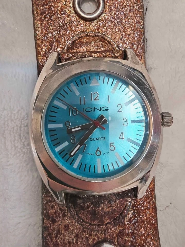 Buy & SellIcing Belt Band WatchIcing Belt Band Watch$5Icing watch with brown belt band. Needs a watch battery. Japan Movt stainless steel watch. Check out my other listings for more vintage watches.WHERE TO MEETCheck LocationView MapSELLERKateSouth London191 review0 chats·0 favorites·2 viewsSEND CHAT TO SELLERHi Kate! I’m interested in your listing.Hi Kate! I’m interested in your listing.Get the Karrot app to chatSign In to chat