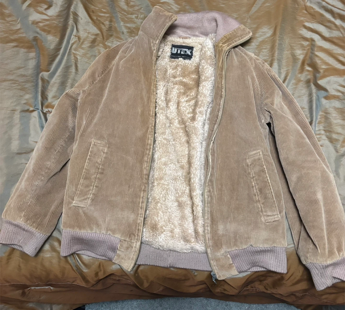 This UTEX bomber jacket is made from corduroy with a cosy sherpa lining. It has a zip-up front and ribbed cuffs and hem. This jacket is perfect for staying warm on cooler days!