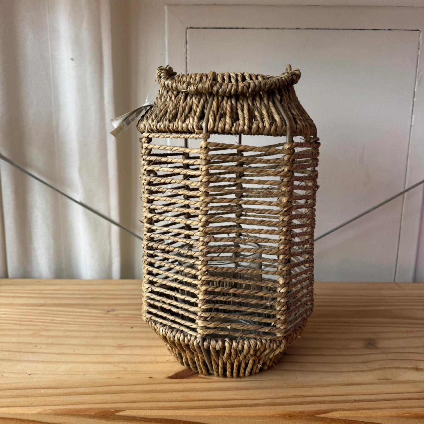 Woven Lantern with Glass Insert