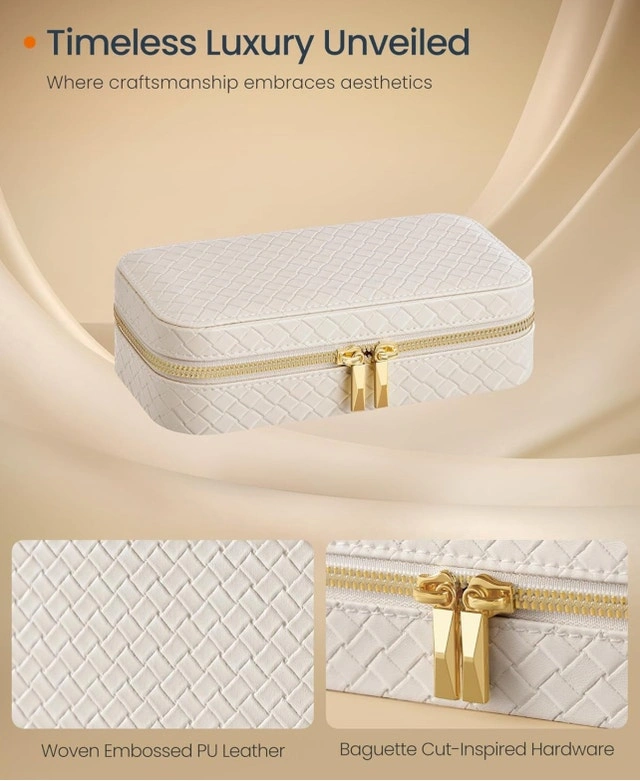 Keep your precious jewellery safe and sound with this new SONGMICS HOME travel jewellery case! It's perfect for necklaces, earrings, rings, and more. * Woven Embossed PU Leather * Baguette Cut-Inspired Hardware * Compact-Yet-Complete Storage * Separate Velvet Jewelry Pouch Looking to add a touch of elegance to your travels? This jewellery case is just the ticket! It's so stylish, it might just outshine the jewels inside. But don't worry, there's plenty of room for all your treasures. If the ad is still up, it's available!