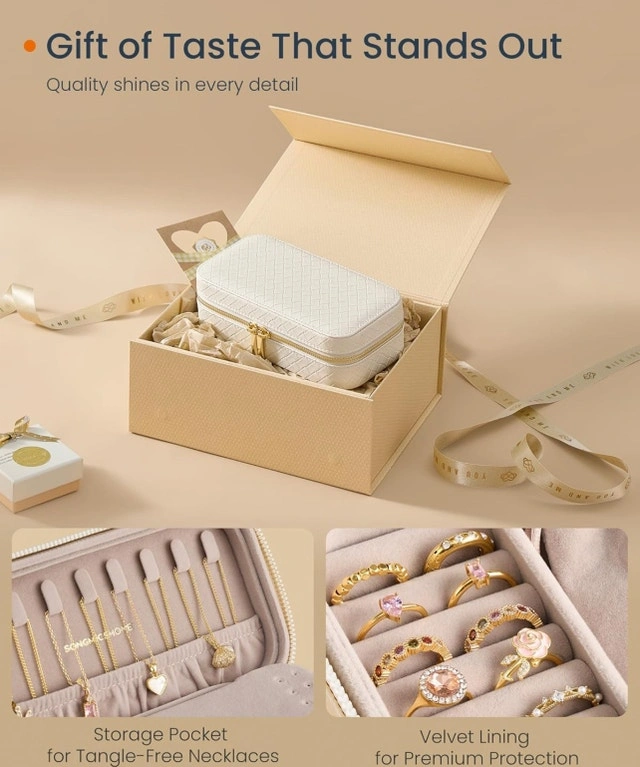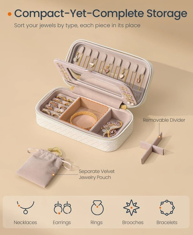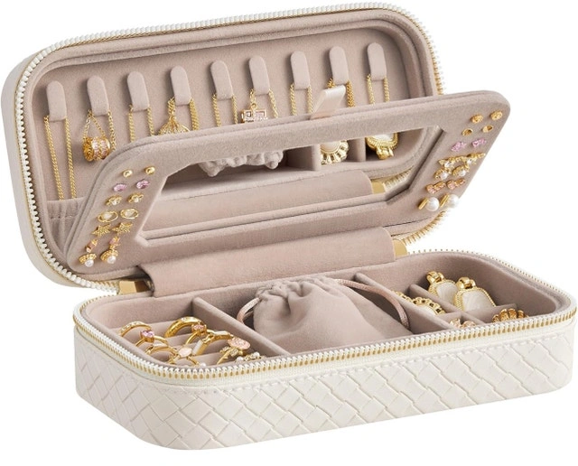 Keep your precious jewellery safe and sound with this new SONGMICS HOME travel jewellery case! It's perfect for necklaces, earrings, rings, and more. * Woven Embossed PU Leather * Baguette Cut-Inspired Hardware * Compact-Yet-Complete Storage * Separate Velvet Jewelry Pouch Looking to add a touch of elegance to your travels? This jewellery case is just the ticket! It's so stylish, it might just outshine the jewels inside. But don't worry, there's plenty of room for all your treasures. If the ad is still up, it's available!