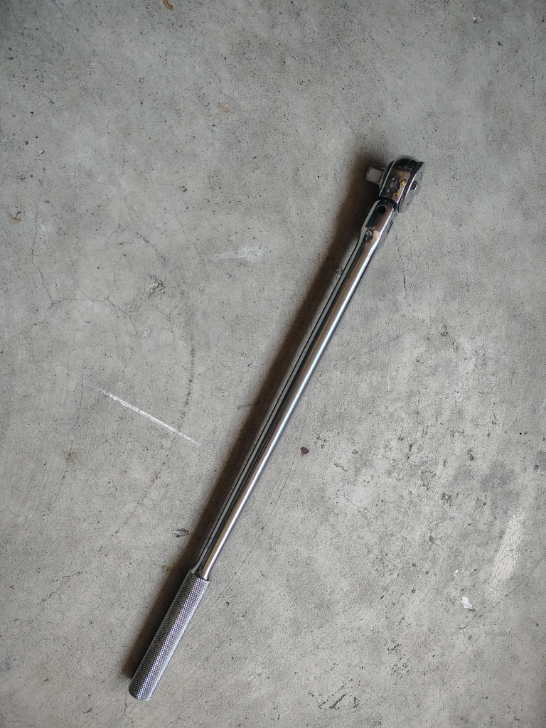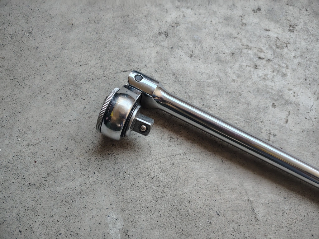 18-1/2" long ratchet with flex head for better access in tight spaces. Features a thumbwheel for easy manual turning. Durable design for everyday use. Ideal for automotive and mechanical work.
