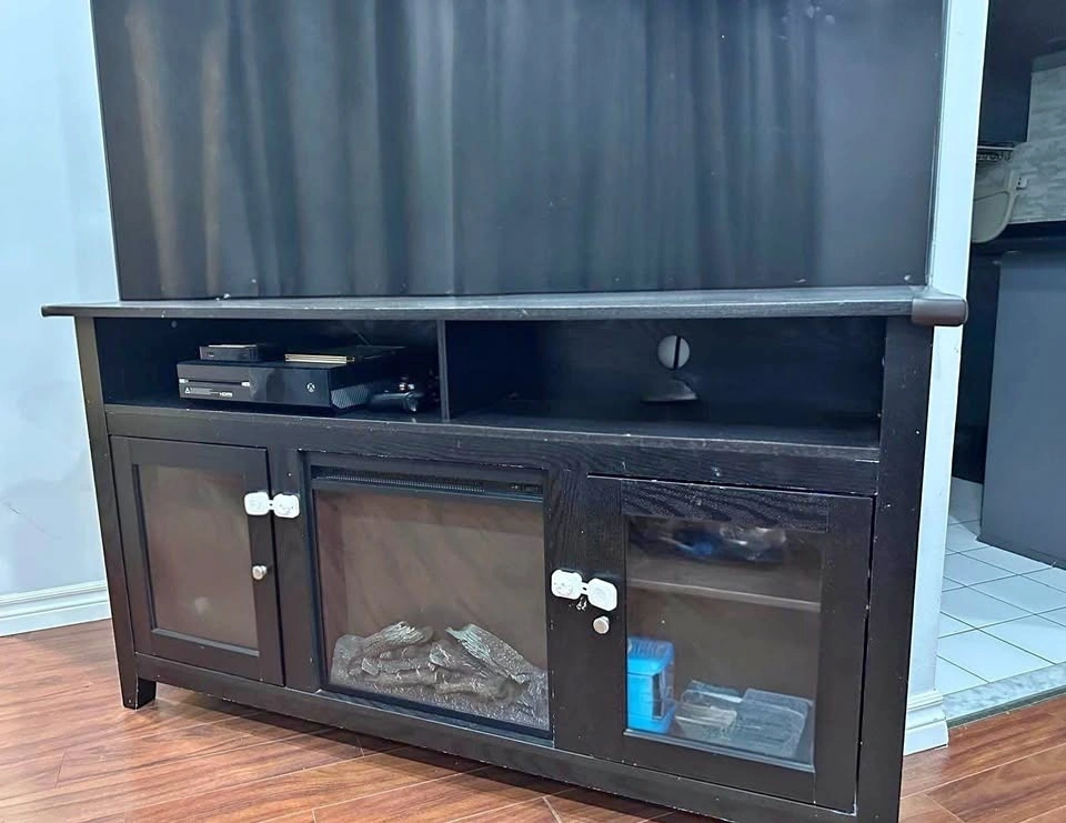 Kohn brand TV Stand for TVs up to 65" with Electric Fireplace included. Used in good condition. Needs to be picked up by Bathurst and Steeles Ave.