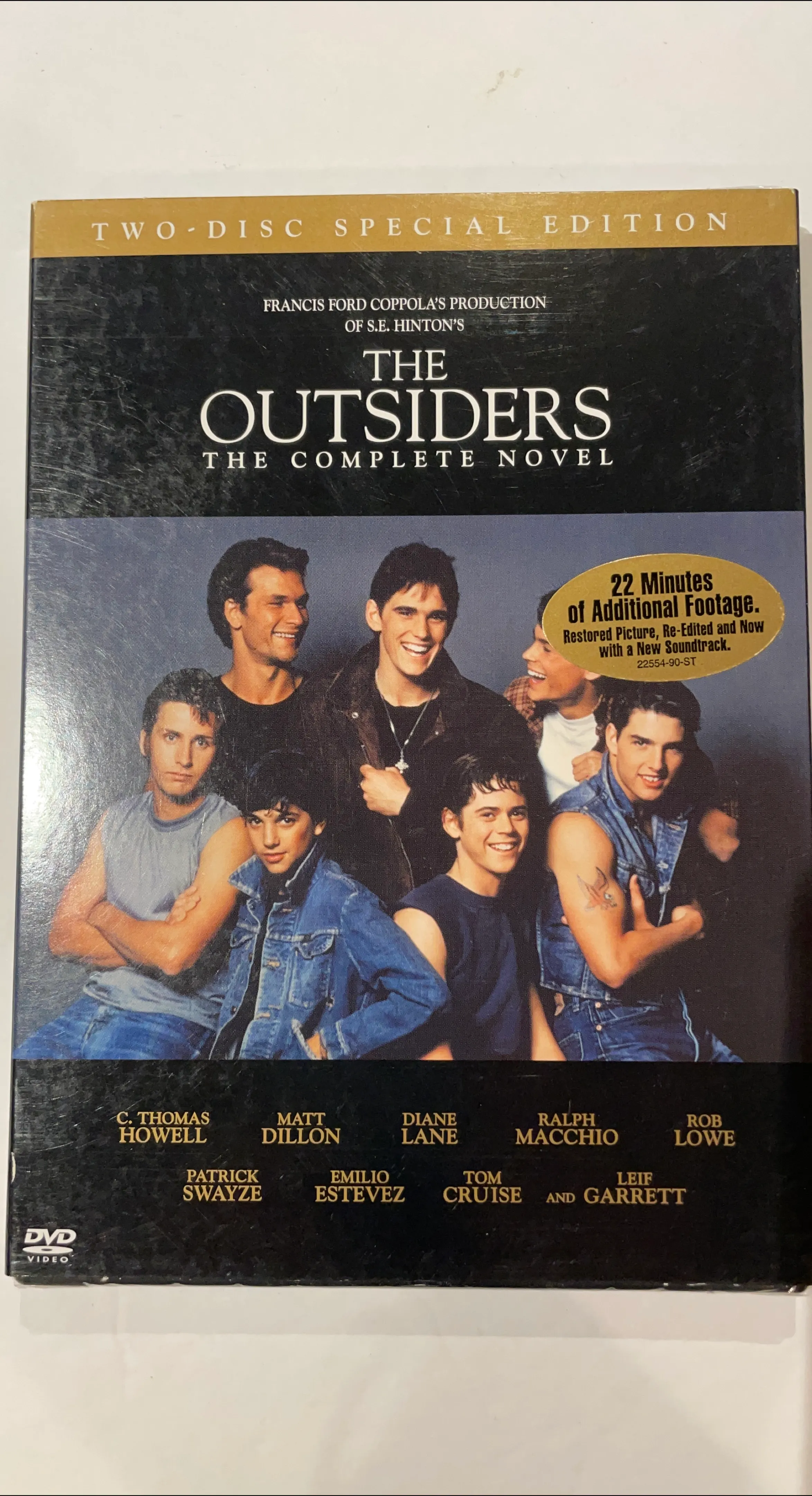 Selling a Two-Disc Special Edition DVD of Francis Ford Coppola's production of S.E. Hinton's 'The Outsiders: The Complete Novel'! This DVD includes 22 minutes of additional footage, restored picture, re-edited, and now with a new soundtrack. Never opened