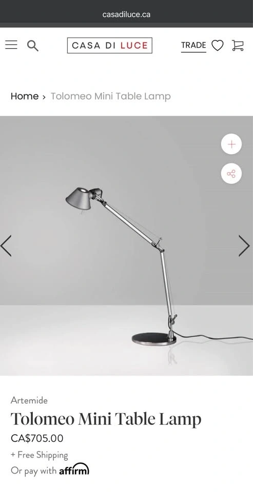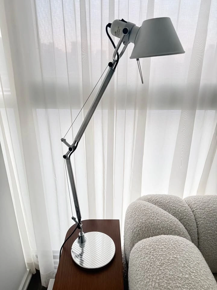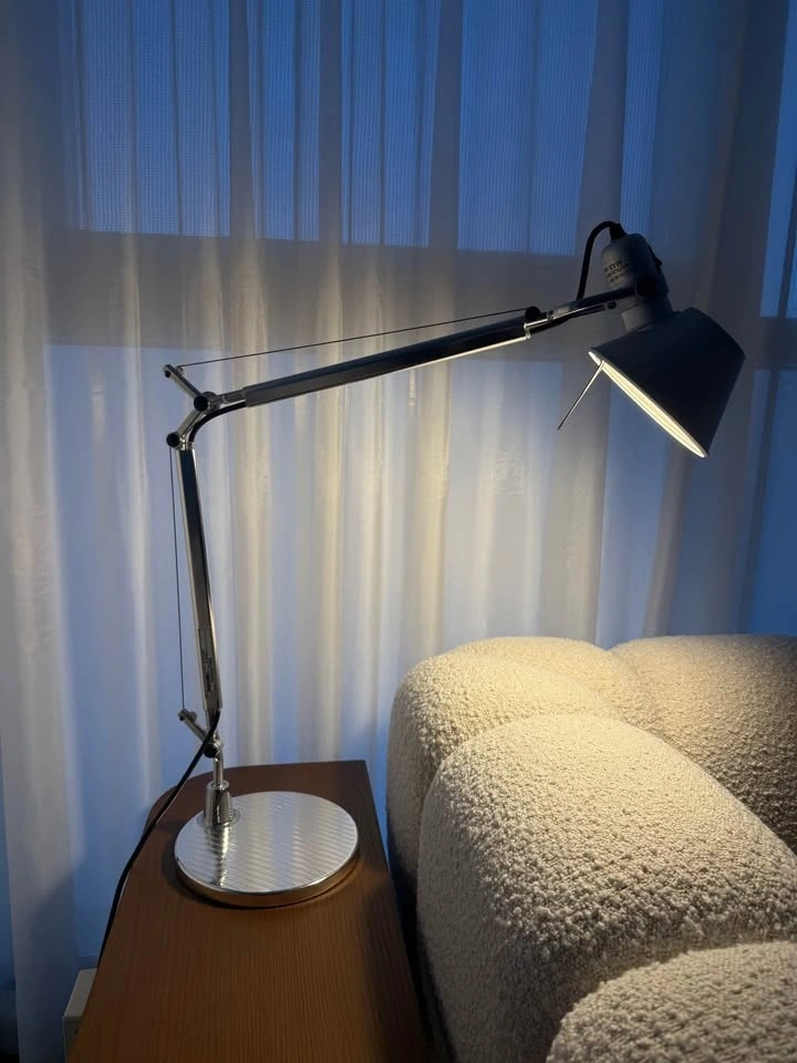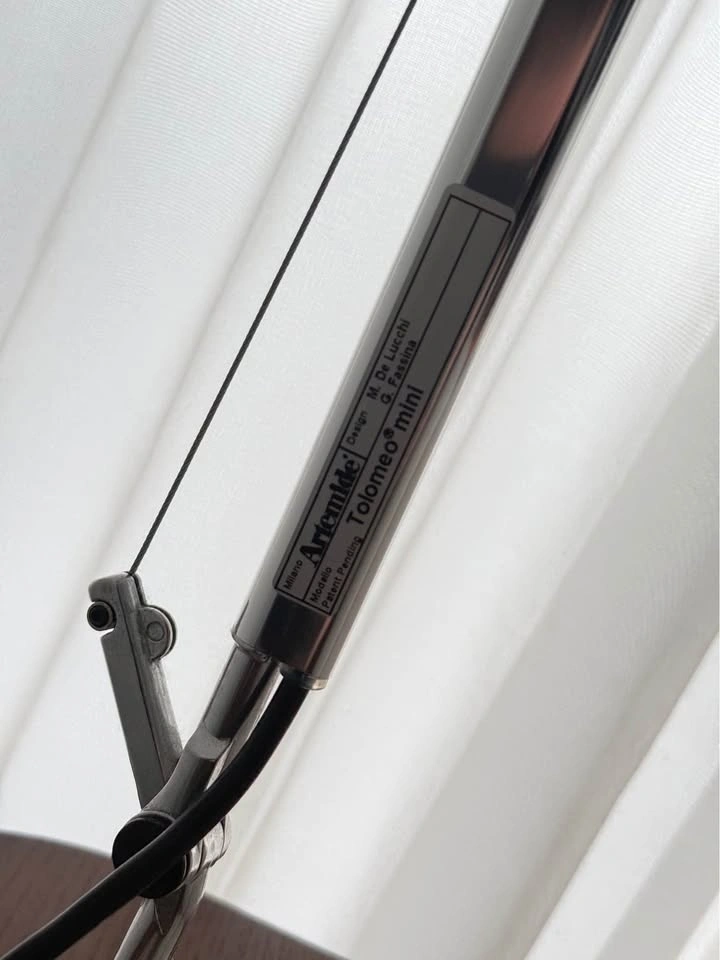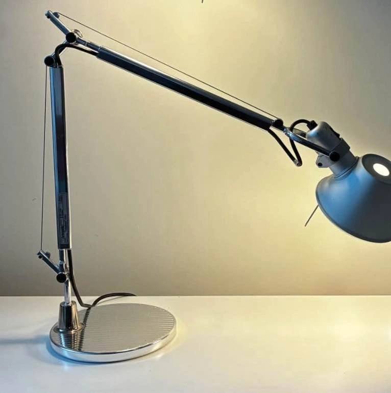 Sleek Artemide Tolomeo Mini table lamp with an aluminum finish. Features an adjustable arm, making it super versatile for any space. The light works great, no issues. AAA+ condition. Authentic Artemide. LED light bulb included. Designer: Michele De Lucchi, Giancarlo Fassina. Dimensions: Height 21.25 in, Length 26.77 in. Max Extension Height: 43.51 in, Max Extension Length: 40.15 in. Pickup downtown Toronto.
