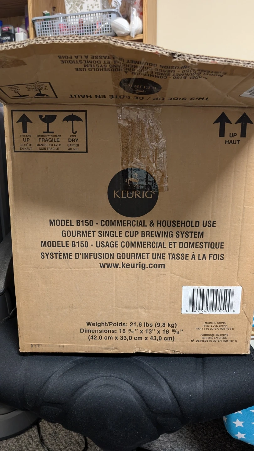 This is a Keurig B150 commercial and household single cup brewing system. It's designed for gourmet single cup brewing. The unit's dimensions are 16 1/10" x 13" x 16 15/16".