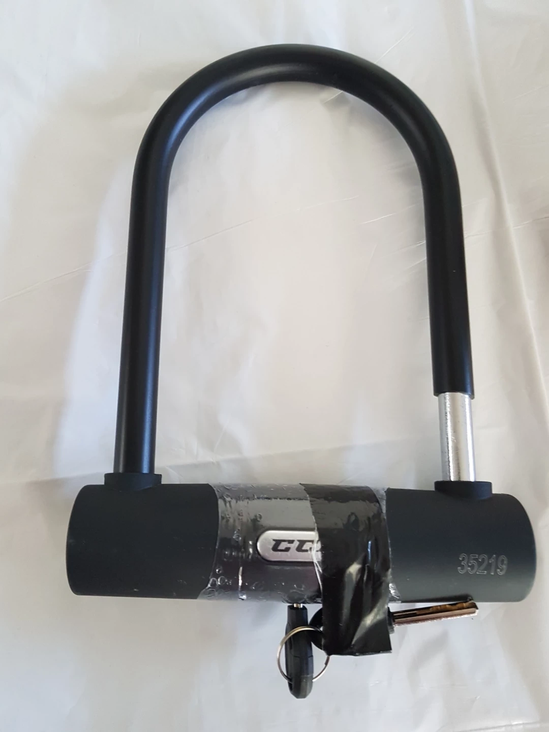 This is a CCM U-lock designed to secure your bicycle. It comes with two keys. Heavy-duty steel construction provides good security.