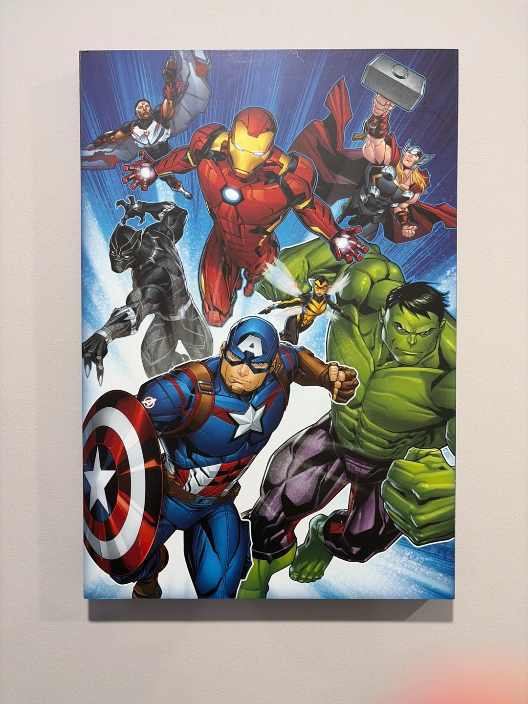 This canvas print features a dynamic illustration of popular Marvel Avengers characters. It's perfect for adding a touch of superhero flair to any room. The vibrant colours and detailed artwork make it a great piece for any fan!
