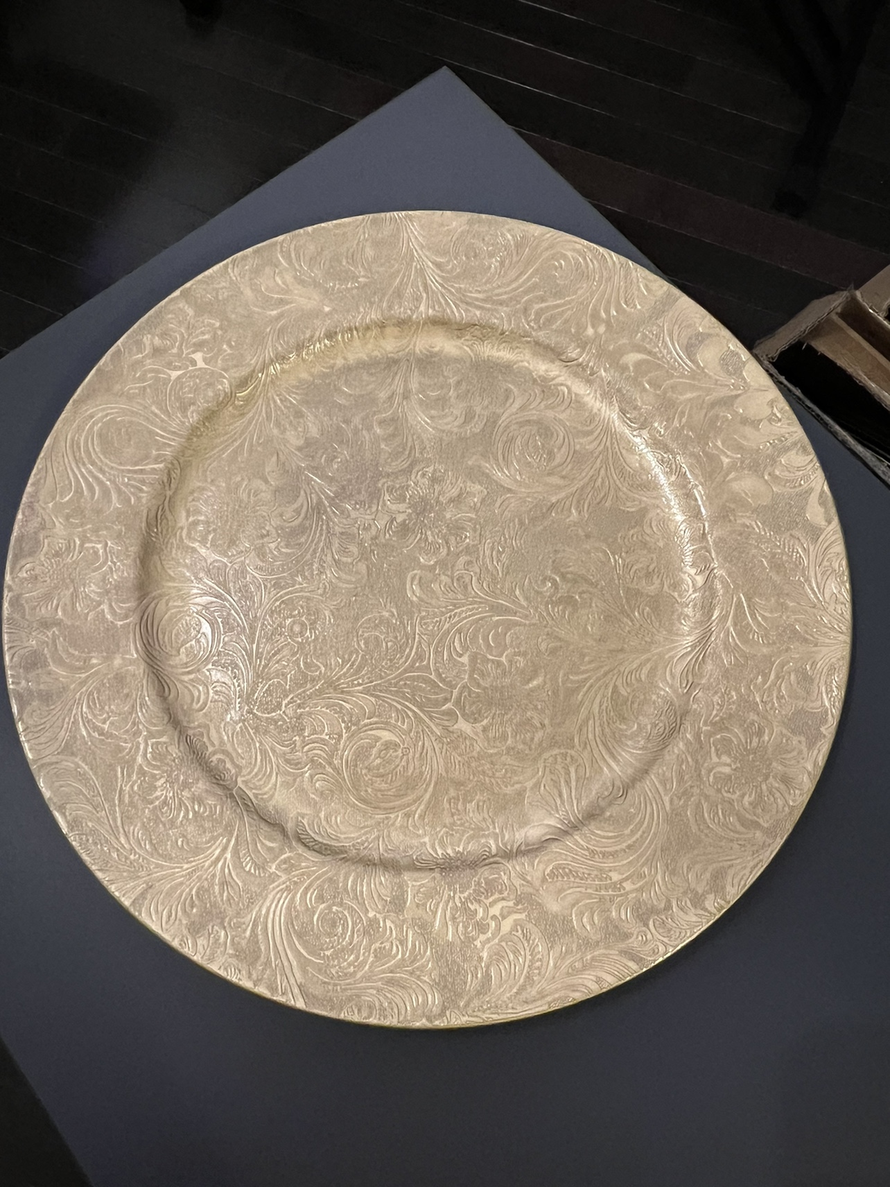 ZOOFOX 40 Pack Gold Charger Plates, 13" Plastic Round Antique Plate Charger for Dinner Plates, Floral Charger Plates for Wedding Dinner Party Table Setting Decor