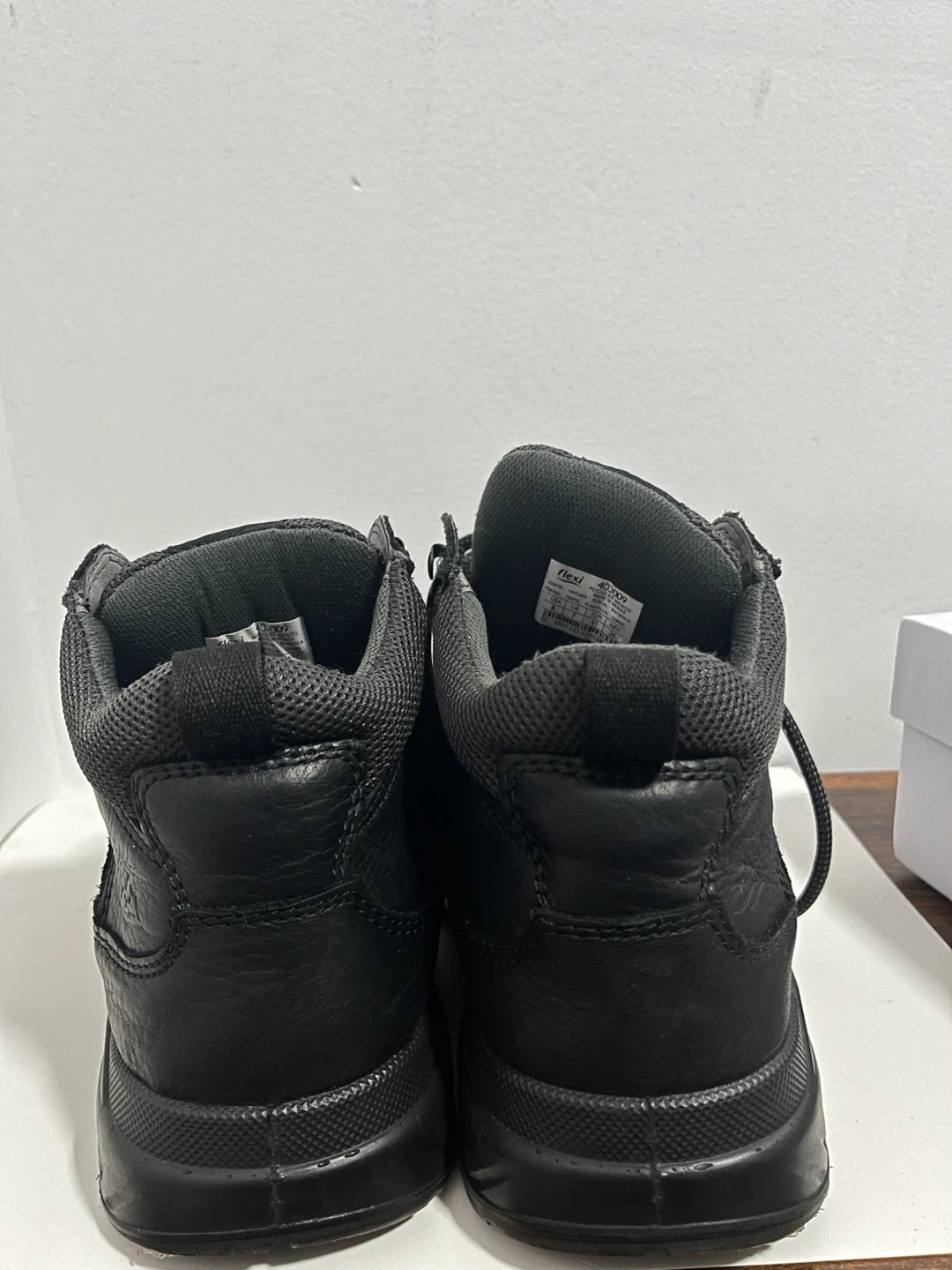 These black Flexi Country boots feature a leather upper with a durable sole. Lace-up closure for a secure fit. Great for outdoor activities!