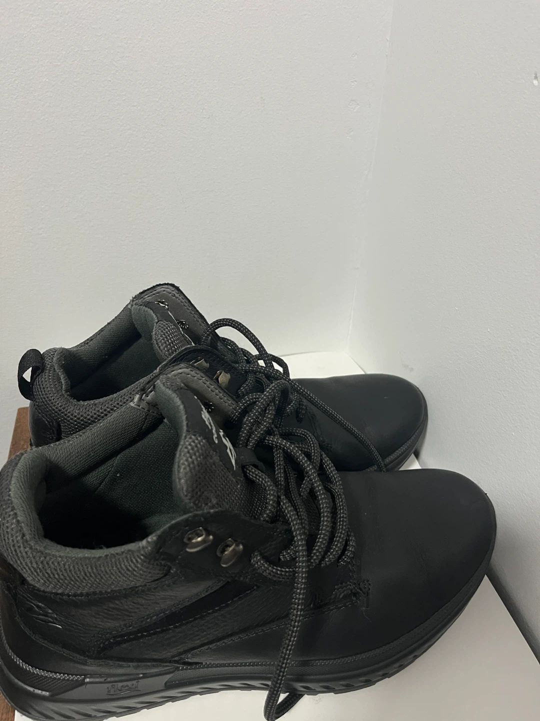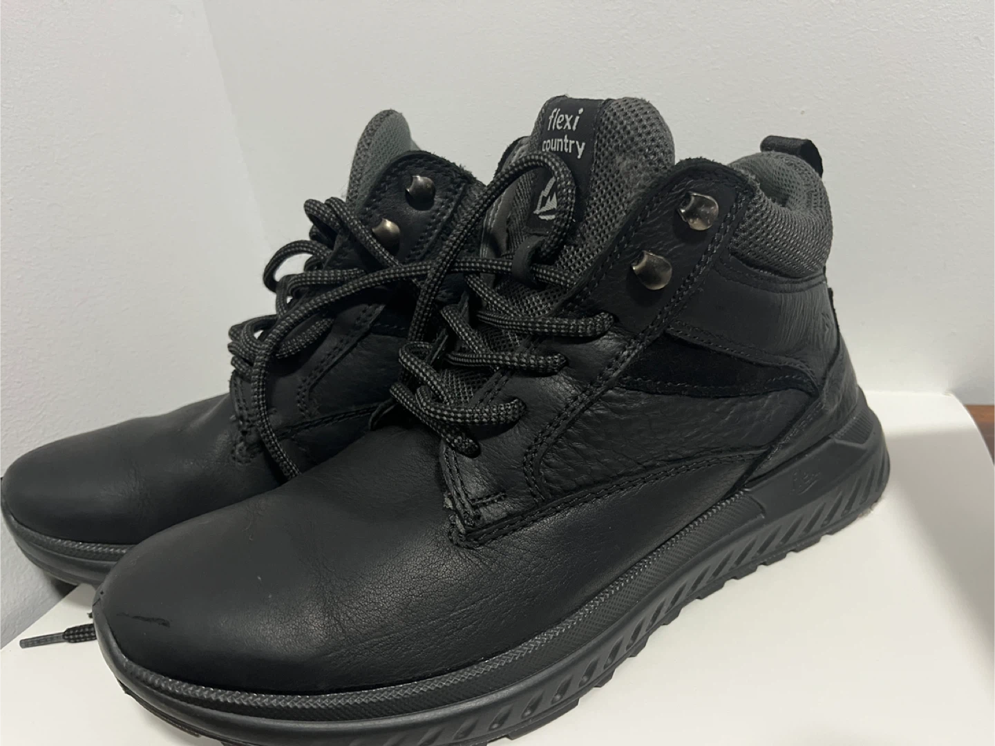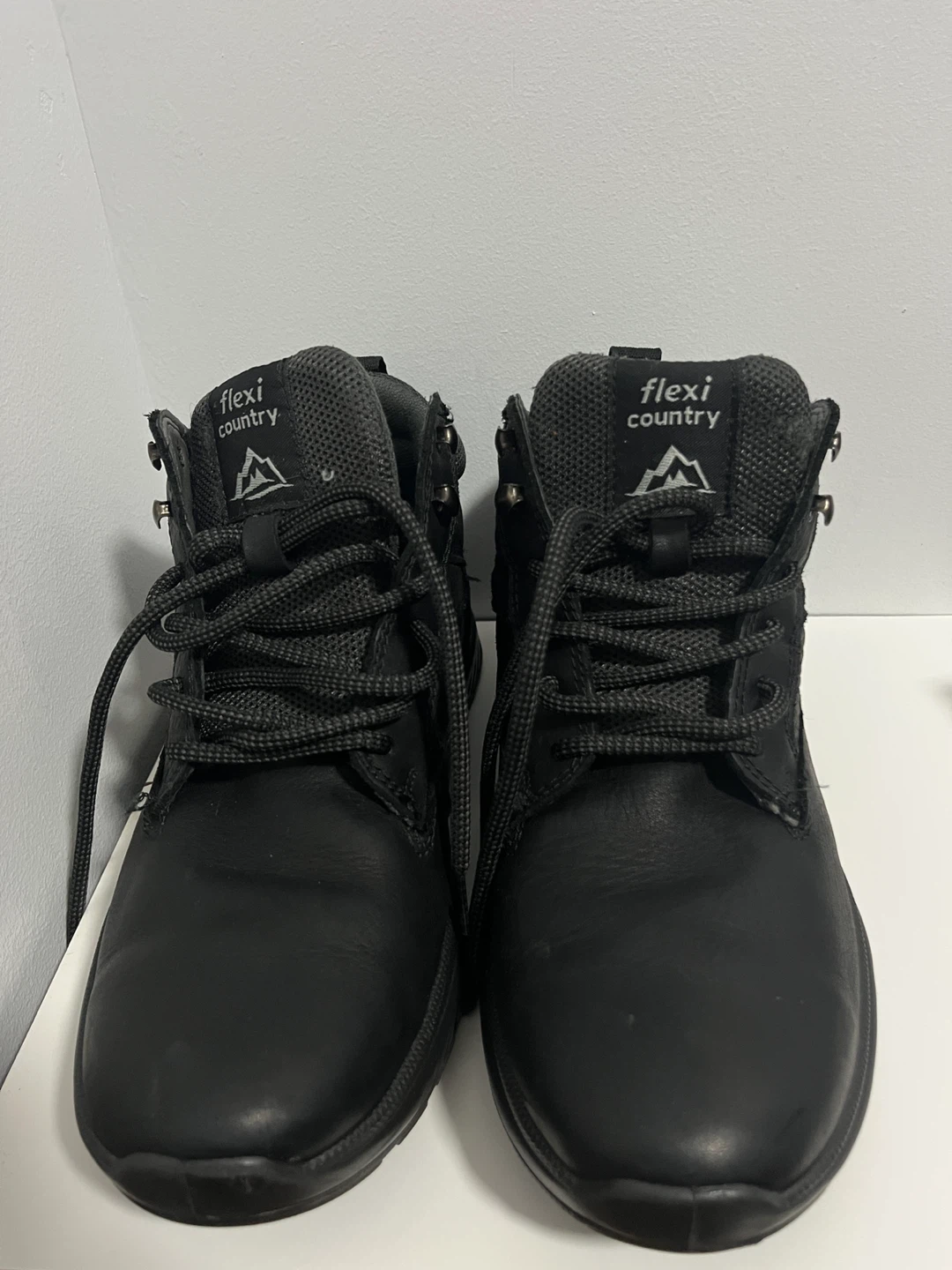These black Flexi Country boots feature a leather upper with a durable sole. Lace-up closure for a secure fit. Great for outdoor activities!