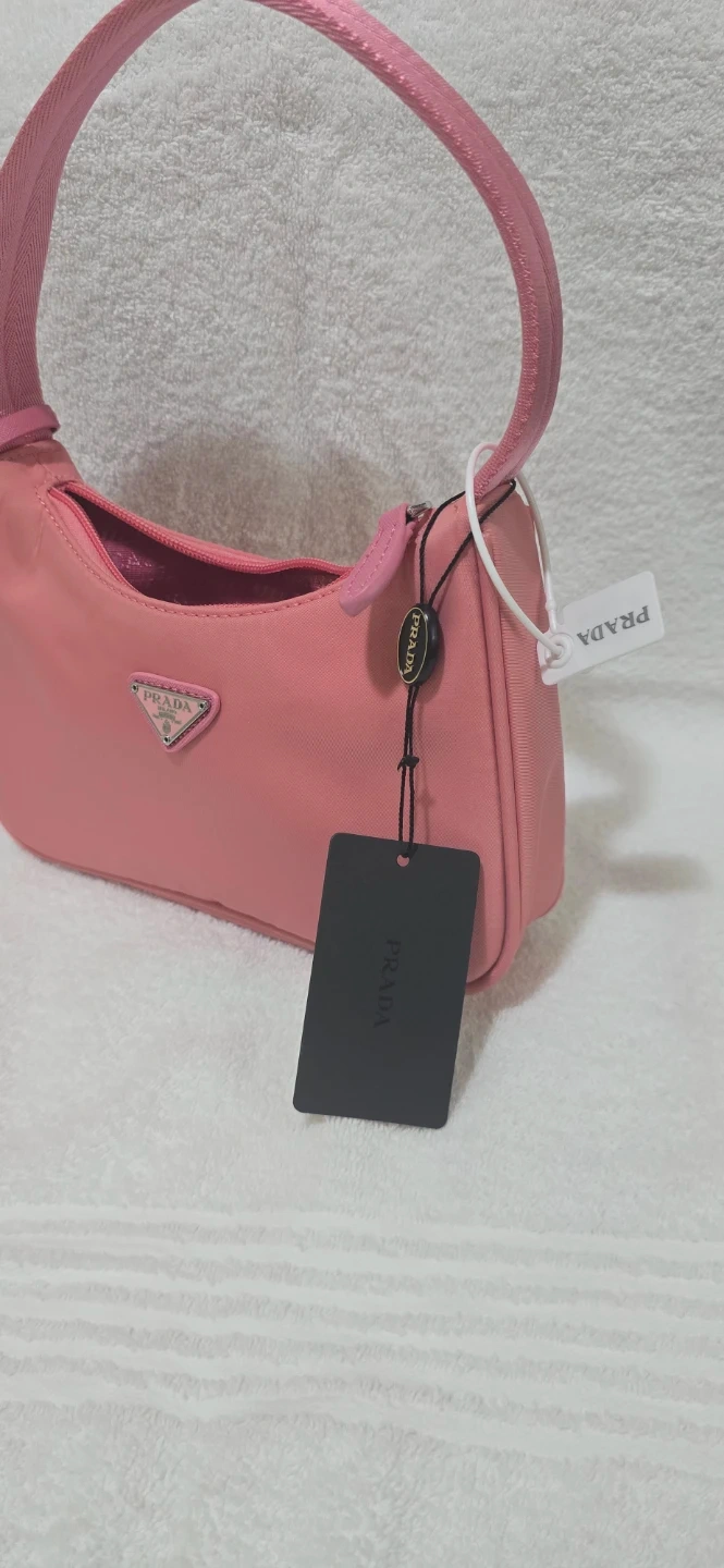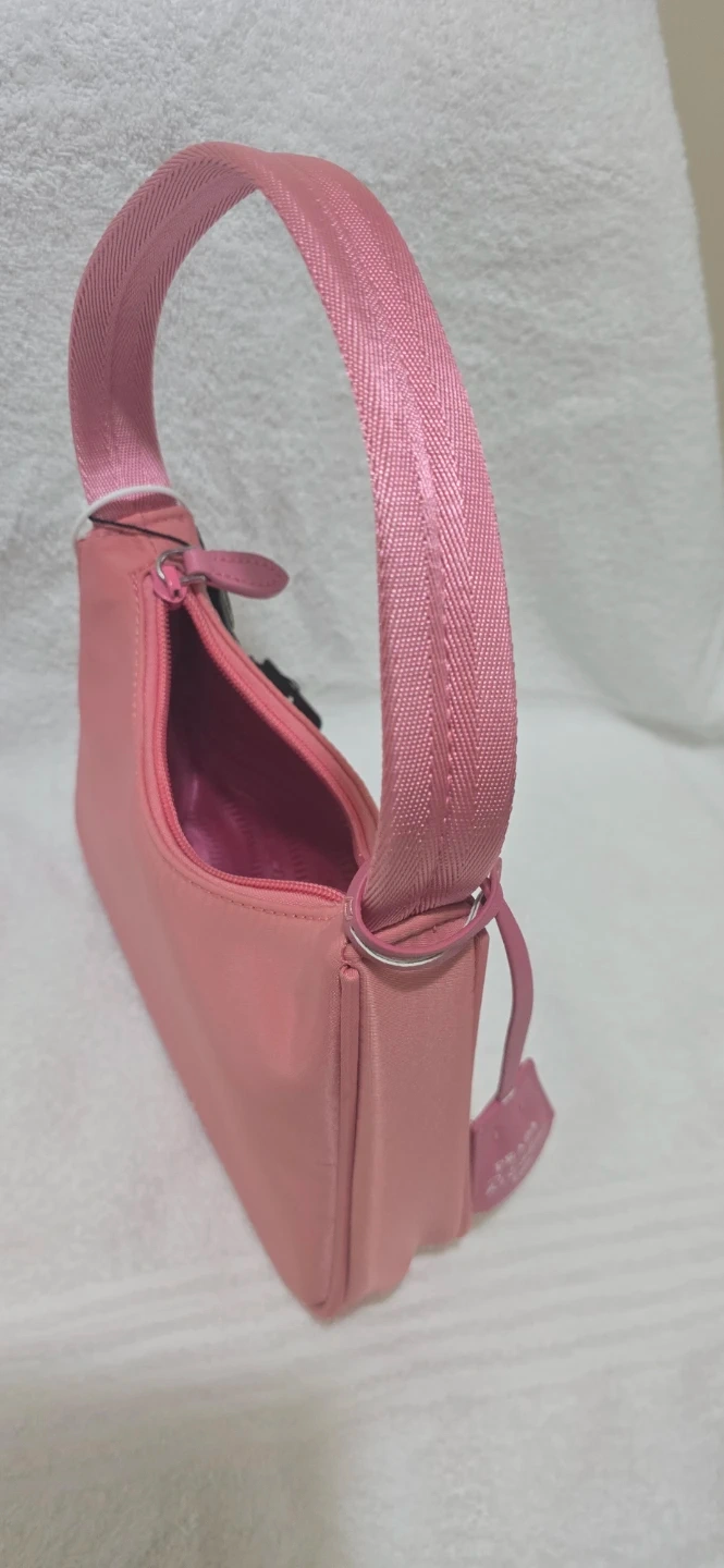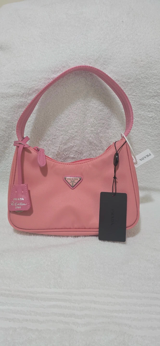 Chic pink Prada shoulder bag made from nylon. Features a zippered closure and a single strap. Includes original tags.