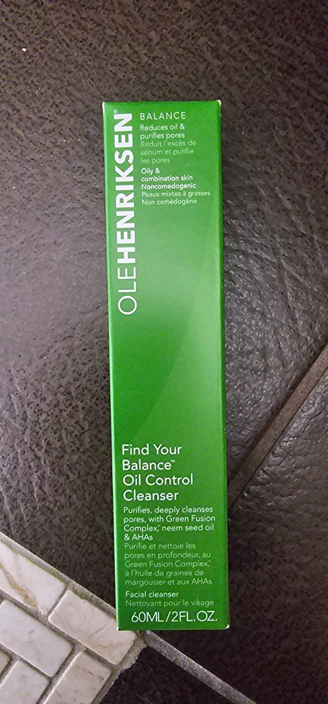 This is the OLEHENRIKSEN Find Your Balance Oil Control Cleanser. It purifies and deeply cleanses pores with Green Fusion Complex, neem seed oil, and AHAs. It's formulated for oily and combination skin and is non-comedogenic. 60mL/2FL.OZ. size.