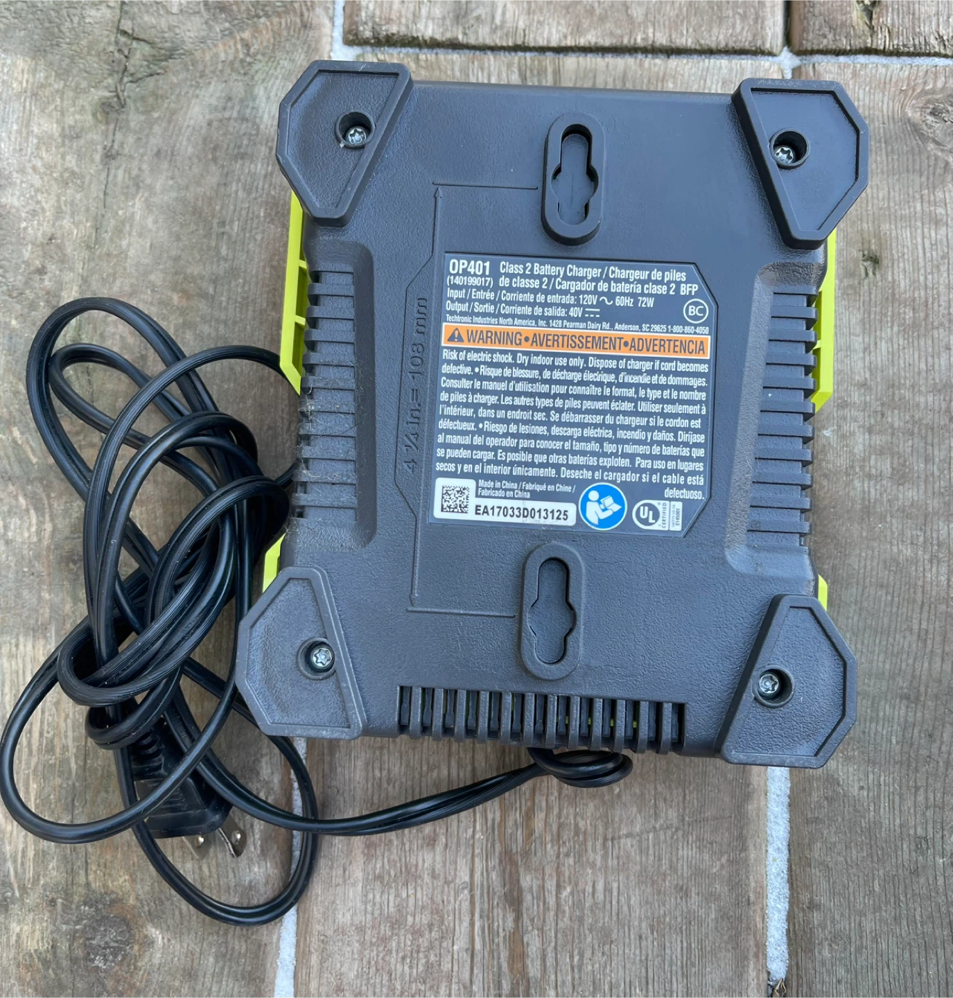 This RY40502 chainsaw is in very good condition. Quiet & powerful. The 2.6 AH battery OP40261 works well and holds a charge with no issues. The charger is model OP401 and is also in very good condition. First come, first served. No holds. Smoke free home. Private Sale. Pickup in Windsor Park.