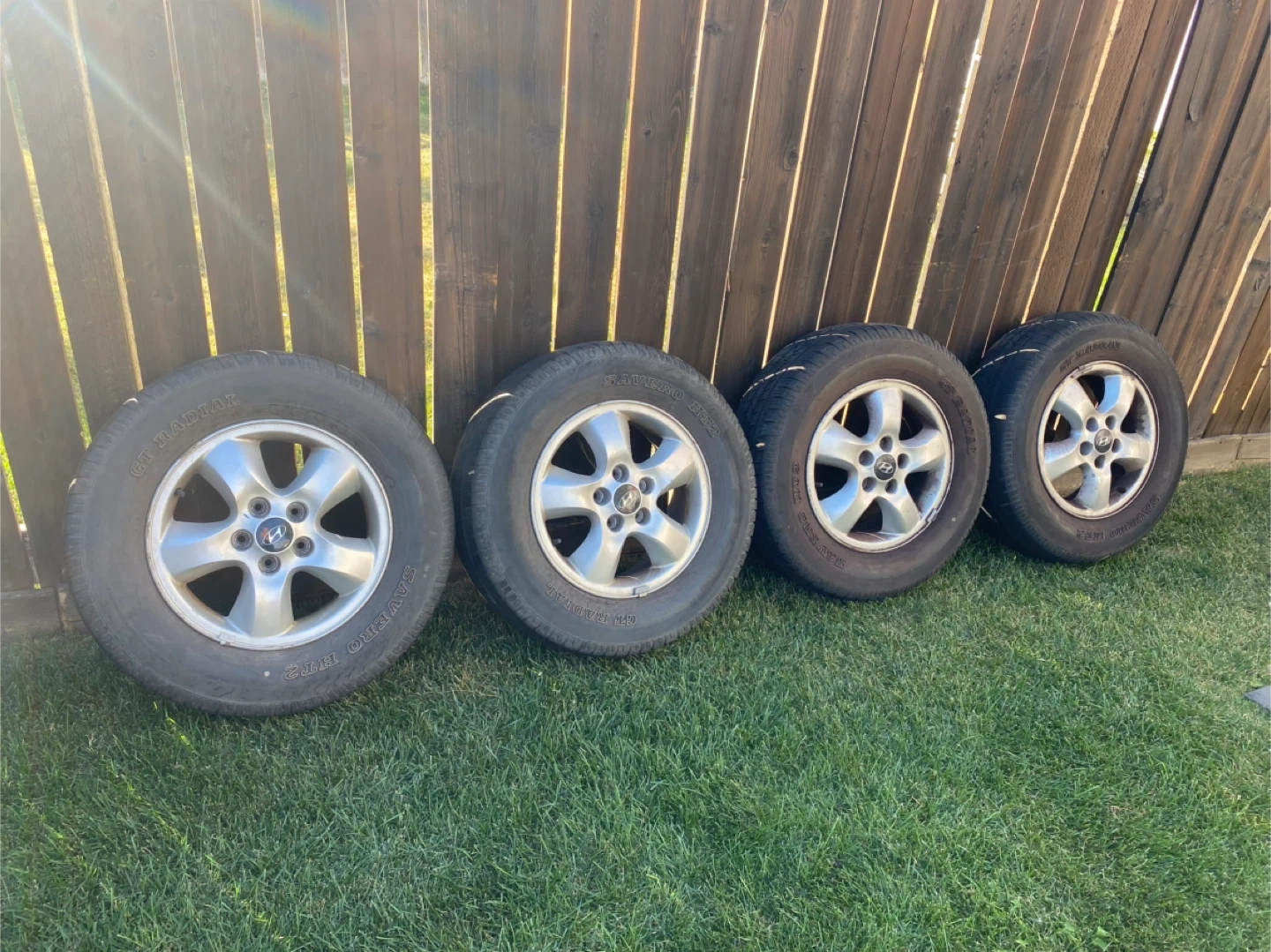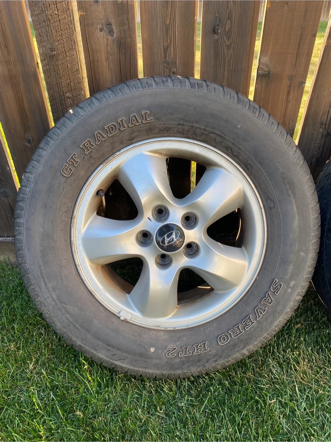 10Selling a set of four Hyundai Santa Fe GT Radial Savero HT2 tires and rims. They're in good condition and ready to be put to use!