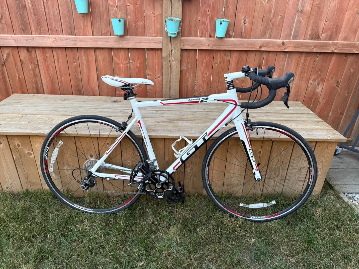 60GT Series 2 Road Bike – Ready to Ride Selling my GT Series 2 road bike. It’s super light, fast, and perfect for anyone looking to get into road cycling or just wants a solid bike for commuting or fitness rides. Details: -GT Series 2 lightweight aluminum frame -Carbon front fork -Shimano Tiagra 2x10 drivetrain – shifts clean and smooth -AlexRims AT450 wheels with 700c tires -Caliper brakes -Comes with a water bottle cage -Everything works great, no issues — just normal scuffs from use - Comes with Bell Air Attack 650 tire pump It’s been well taken care of and stored indoors. Awesome bike for the price and ready to ride right away.