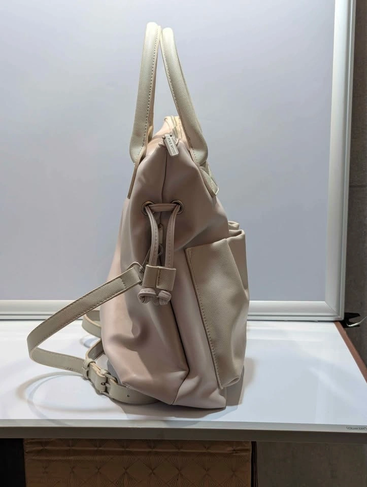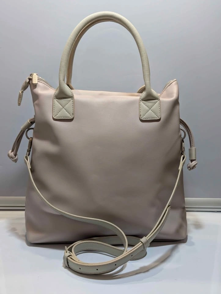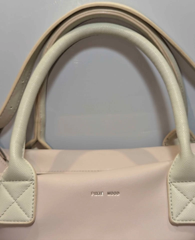 Elevate your everyday look with this gorgeous, spacious Pixie Mood Vegan Leather Tote in a versatile light pink/sand shade with chic cream contrast handles. PETA-approved and perfect for the conscious shopper!