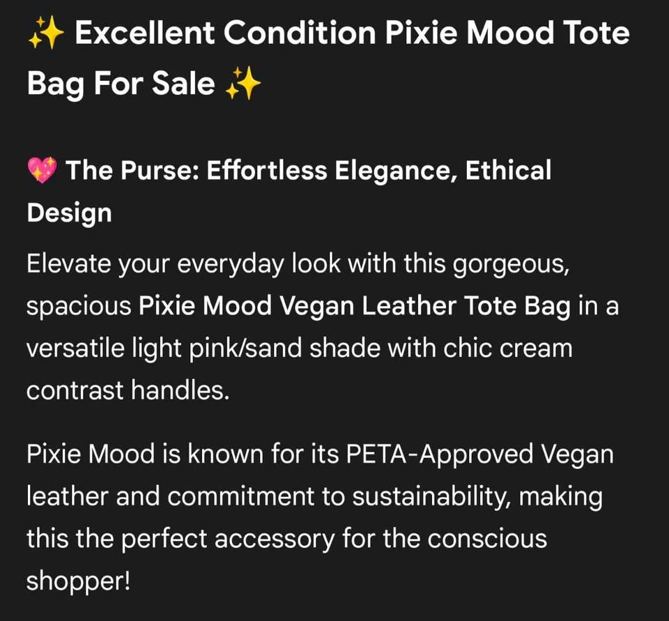 ✨ Pixie Mood Vegan Leather Tote Bag ✨