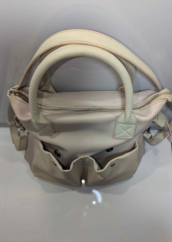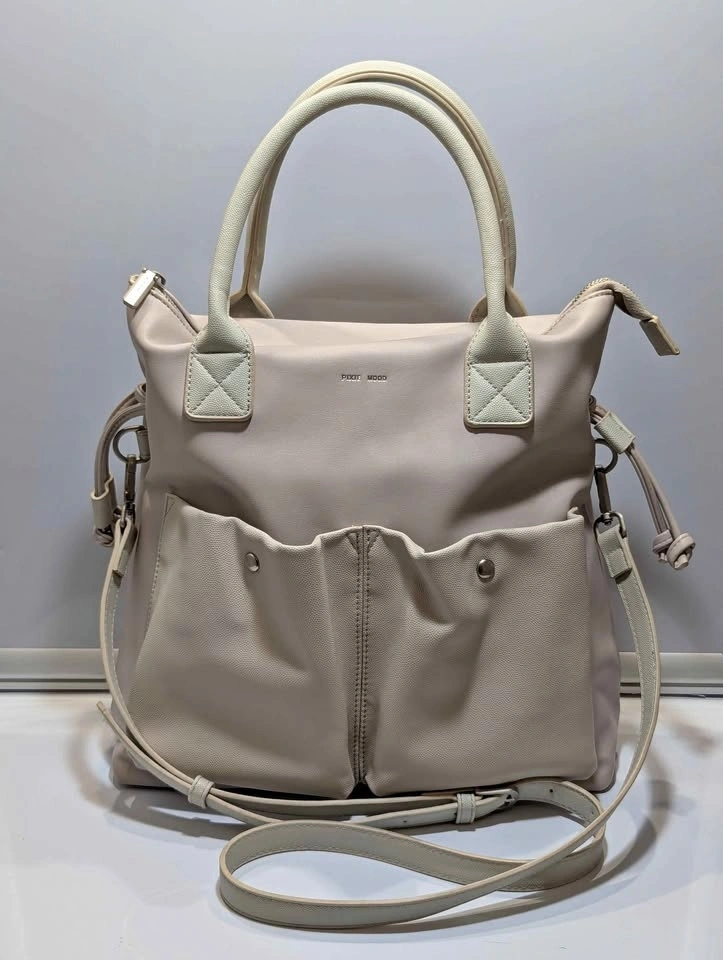 Elevate your everyday look with this gorgeous, spacious Pixie Mood Vegan Leather Tote in a versatile light pink/sand shade with chic cream contrast handles. PETA-approved and perfect for the conscious shopper!