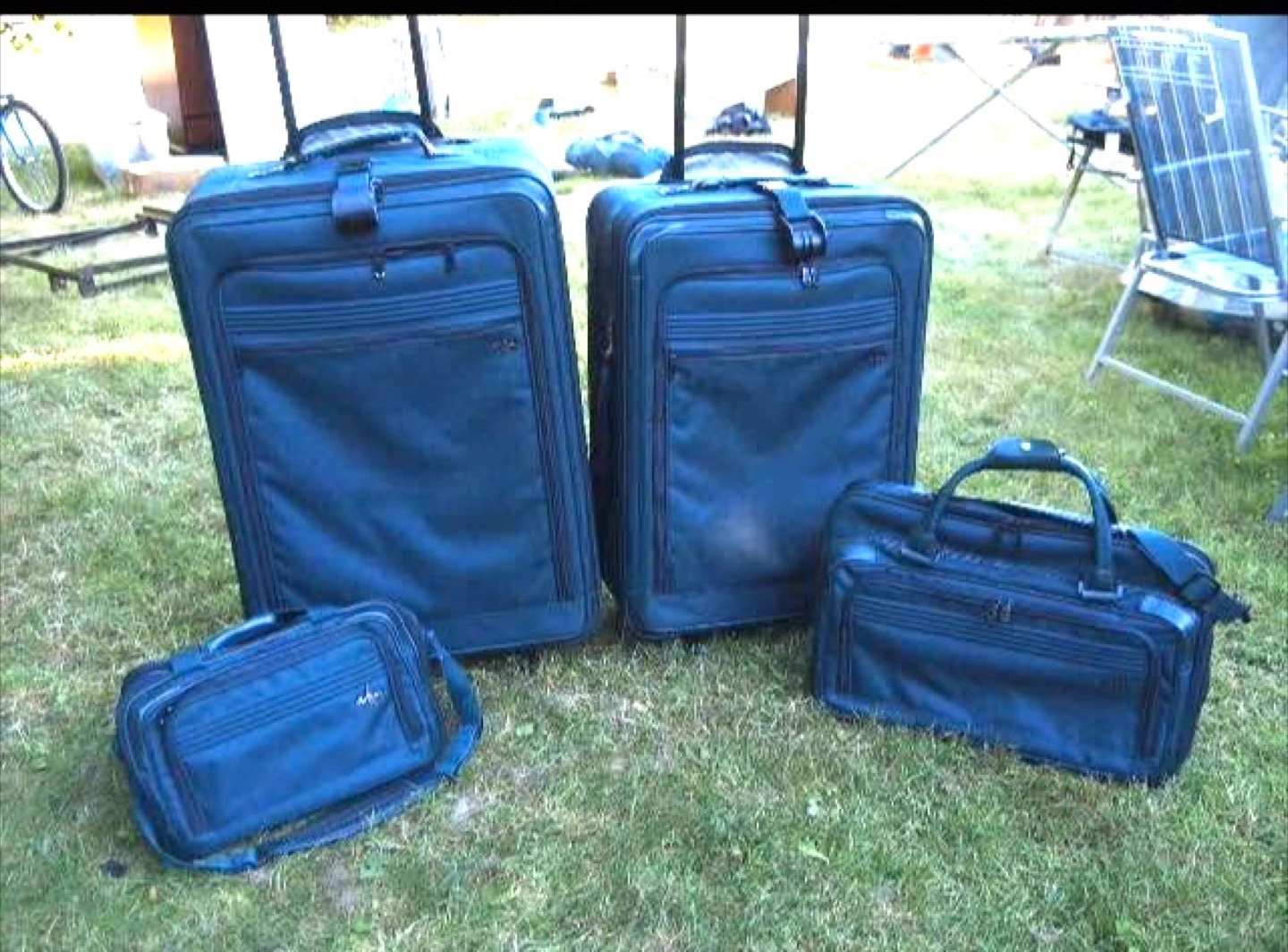 NEW matching luggage set in a deep teal Two rolling suitcases of different sizes and two carry-on bags. These bags will help you to travel with ease and peace of mind.