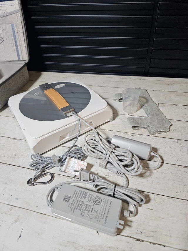 Effortless cleaning - The robot attaches well with 2,800Pa suction power, freeing your hands and time from annoying window cleaning work and avoiding the risk of working at height. Cross water spray technology - The unique cross spray in dual directions effectively keeps a constant mopping humid status, dissolving stubborn stains easily. Highest safety - The internal drive system ensures non-slip steady movement and protection against power failure. WIN SLAM 3.0 - The robot cleans the window completely and thoroughly with an effective forward-reverse motion in 3 adaptive modes: quick cleaning, deep cleaning, and spot stain removal. Edge detection - Even frameless glasses cleaning is easy due to the high precision coupling sensor, which detects edges and fits the cleaning path. 60ml reservoir - The strong capacity of the reservoir and water-saving spray means no frequent mopping pad replacement or water tank refilling. Position memory - The robot automatically returns to its starting point once the window is clean, convenient for huge and out-of-reach surfaces. Box contents: 1 robot, 1 power adapter, 1 safety rope, 1 cleaning mop, 1 water container, 1 instruction manual. Condition: New. For Sale By: Owner.