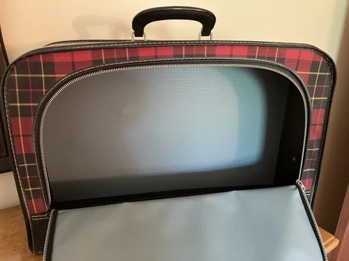This vintage softshell luggage in a classic black tartan plaid design is perfect for your travels. Made with high-quality vinyl and thick cloth, it is durable and long-lasting. The stylish design and spacious interior make it an ideal choice for your next adventure. The material used gives it a soft touch and ease of handling. The luggage comes with a secure lock for safety. Its vintage charm will make it stand out from the crowd.