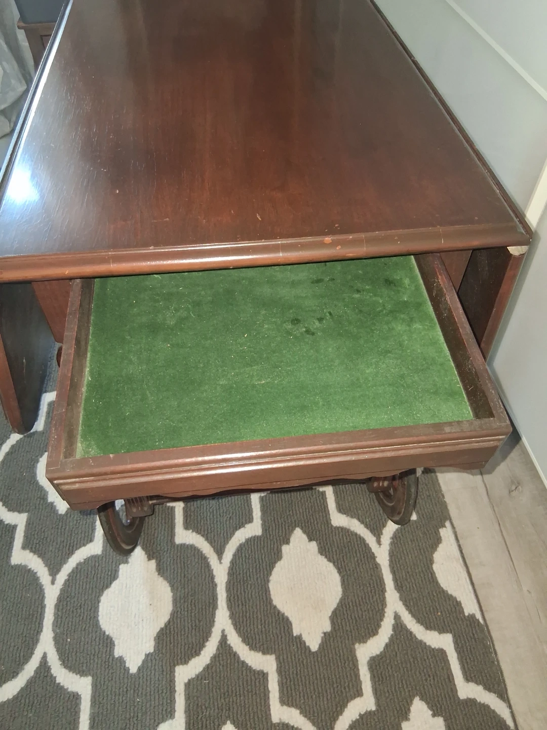 Has a felt lined drawer minor wear as expected with age