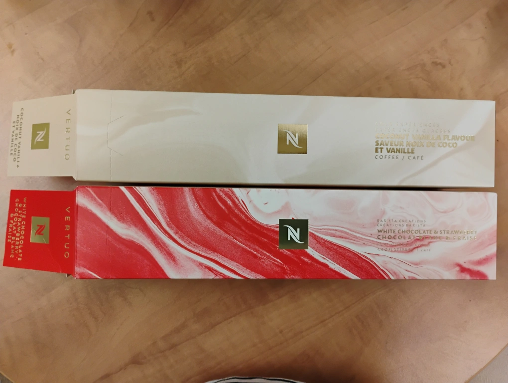 Open box Nespresso limited edition vertuo pods, 230ml long.