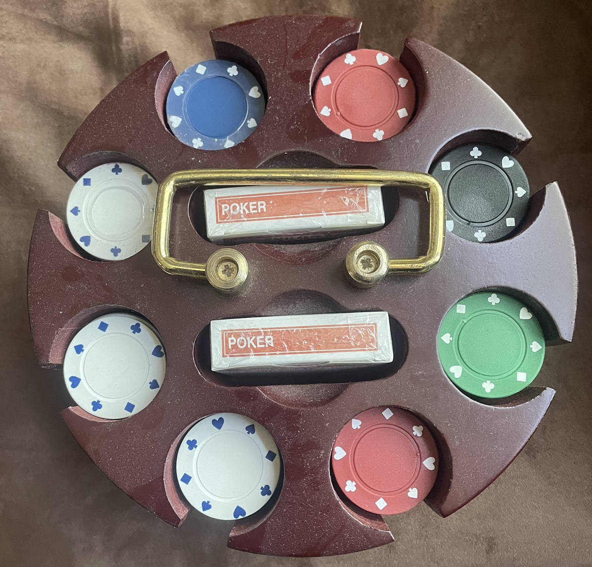 1 / 31 / 3Buy & SellVintage Wooden Poker CarouselVintage Wooden Poker Carousel$40VINTAGE POKER CHIP SET WOODEN CAROUSEL CADDY INCLUDING CHIPS Holds 2 Decks of Cards— 2 New Decks Included Spins Excellent Vintage ConditionConditionLike newWHERE TO MEETMeadowvale MississaugaView MapSELLERverifiedDomMeadowvale1808 reviews1 chats·2 favorites·92 viewsSEND CHAT TO SELLERHi Dom! I’m interested in your listing.Hi Dom! I’m interested in your listing.Get the Karrot app to chatSign In to chat