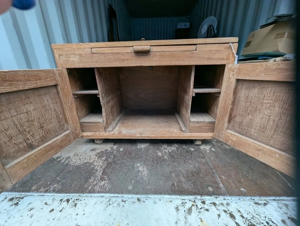 Antique Teak Wood Wash Basin with storage underneath. The basin can be displayed or hidden under the wood top. Originally purchased for $595. Dimensions are 28"L x 15.5"W x 18.25"H with a 15.5"D basin. Pick up in Richmond near Garden City/Granville. Exact cash only.