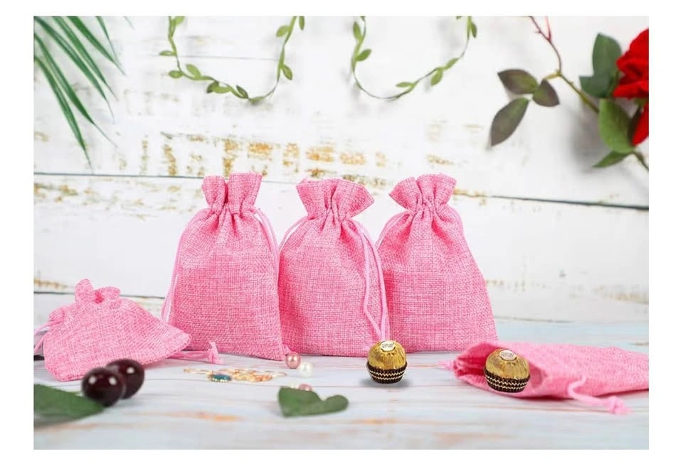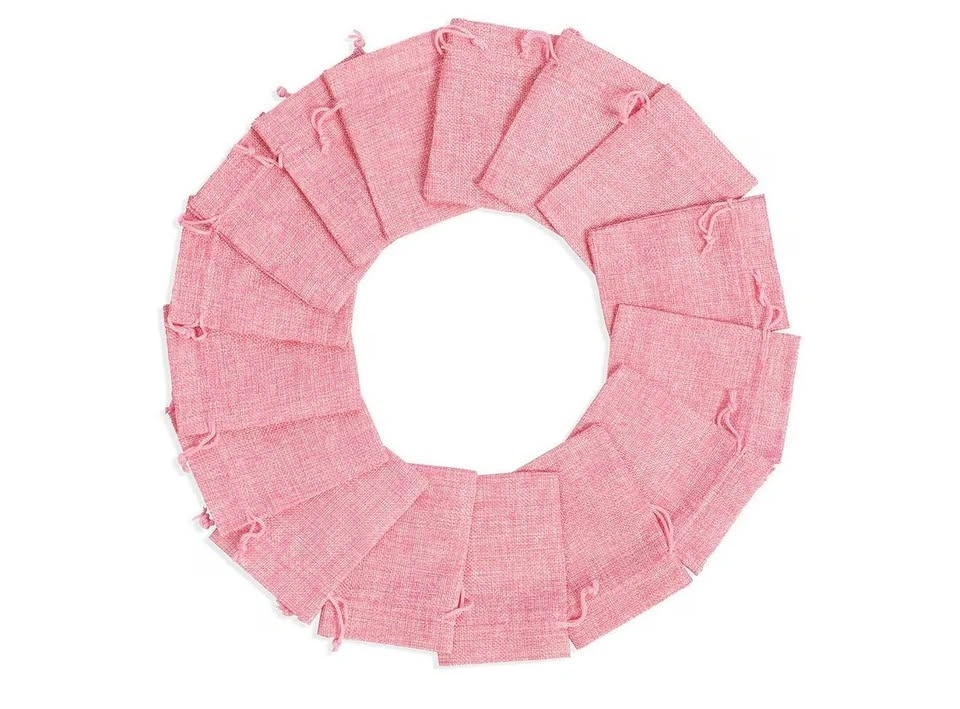 24 Pack 3.9x5.3 Inch Pink Color Burlap Favor Gift Bags, Small Gift Bags, Linen Jewelry Pouches with Drawstring for Gifts and Wedding Party. Please check my other listings! 😊