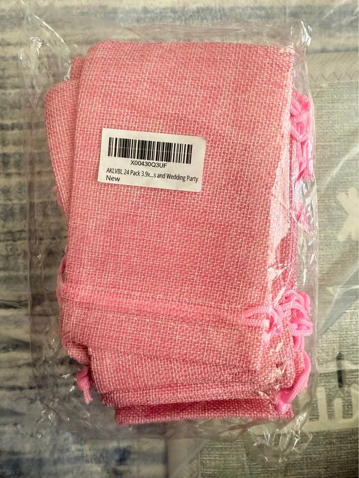 24 Pack 3.9x5.3 Inch Pink Color Burlap Favor Gift Bags, Small Gift Bags, Linen Jewelry Pouches with Drawstring for Gifts and Wedding Party. Please check my other listings! 😊