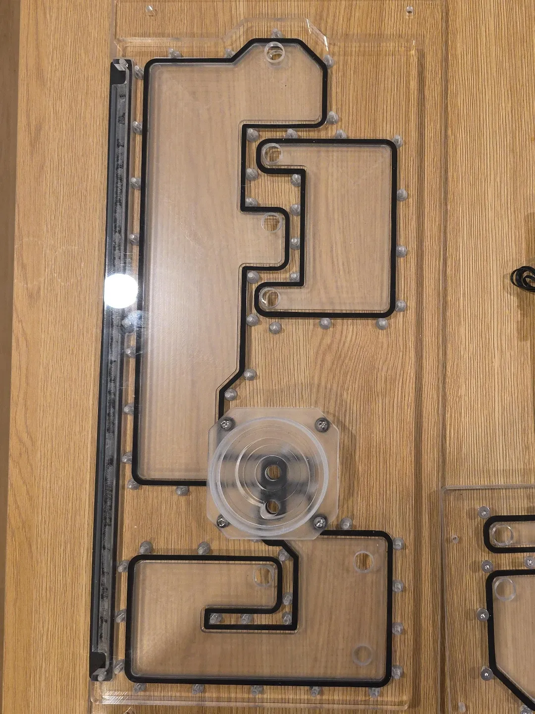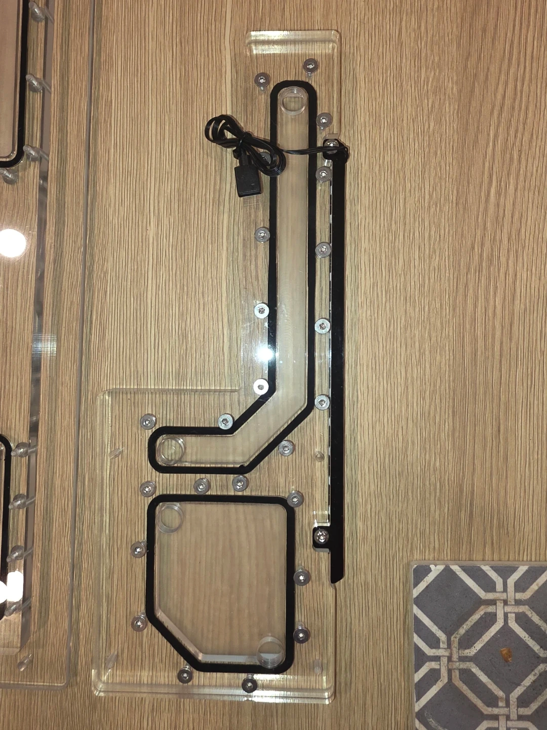 This is a custom PC water cooling reservoir distribution plate. It's made of clear acrylic.