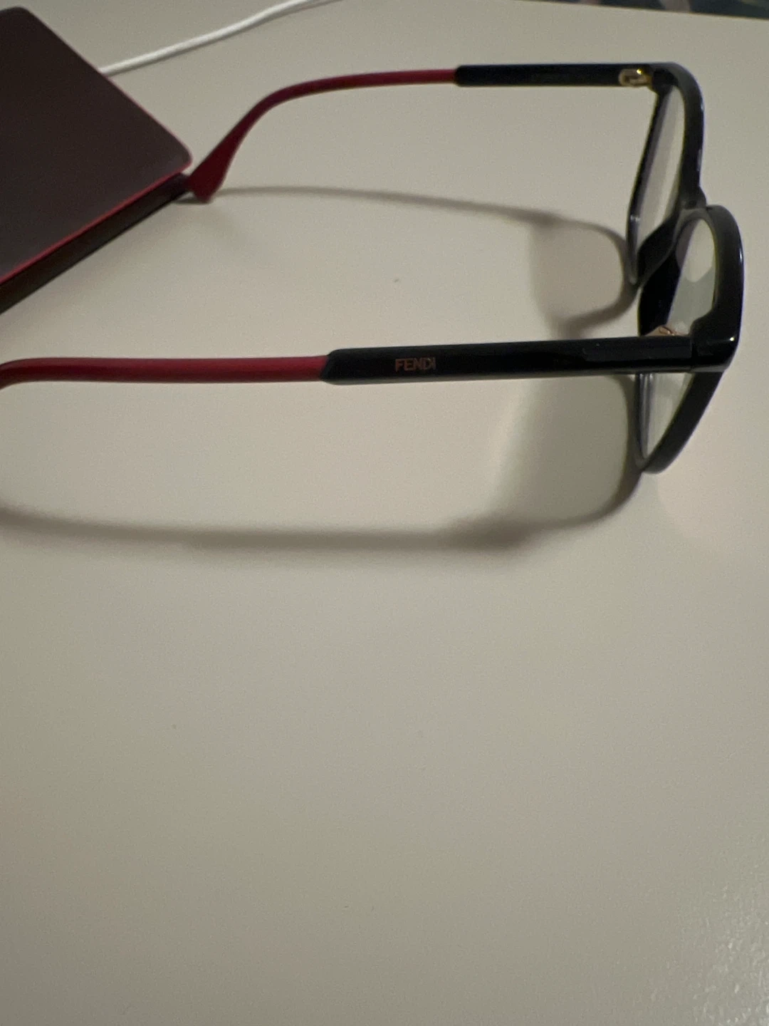 Selling a pair of Fendi eyeglasses! The frames are black with red accents on the arms. They come with a Fendi case to keep them safe and scratch-free.