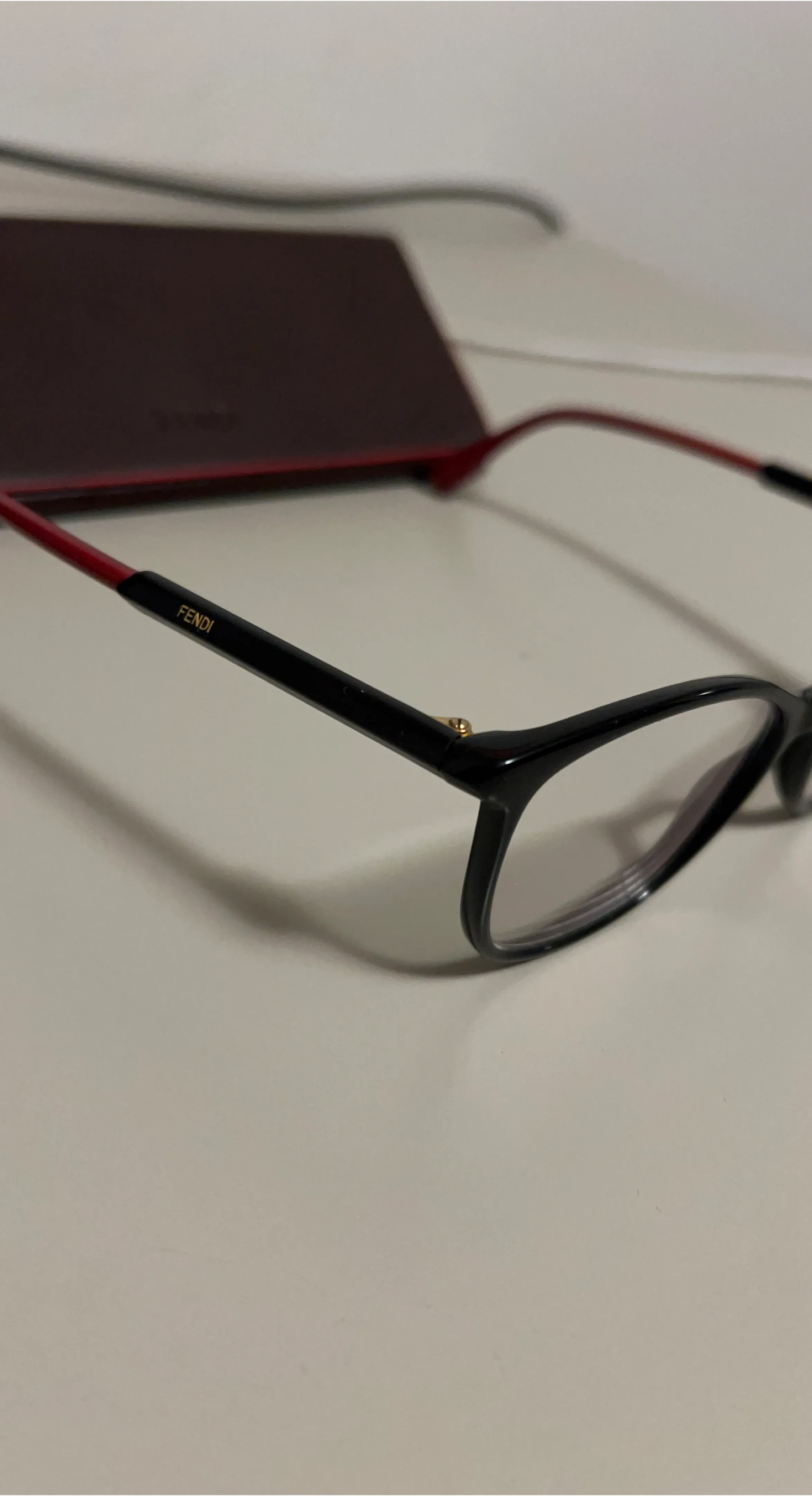Selling a pair of Fendi eyeglasses! The frames are black with red accents on the arms. They come with a Fendi case to keep them safe and scratch-free.