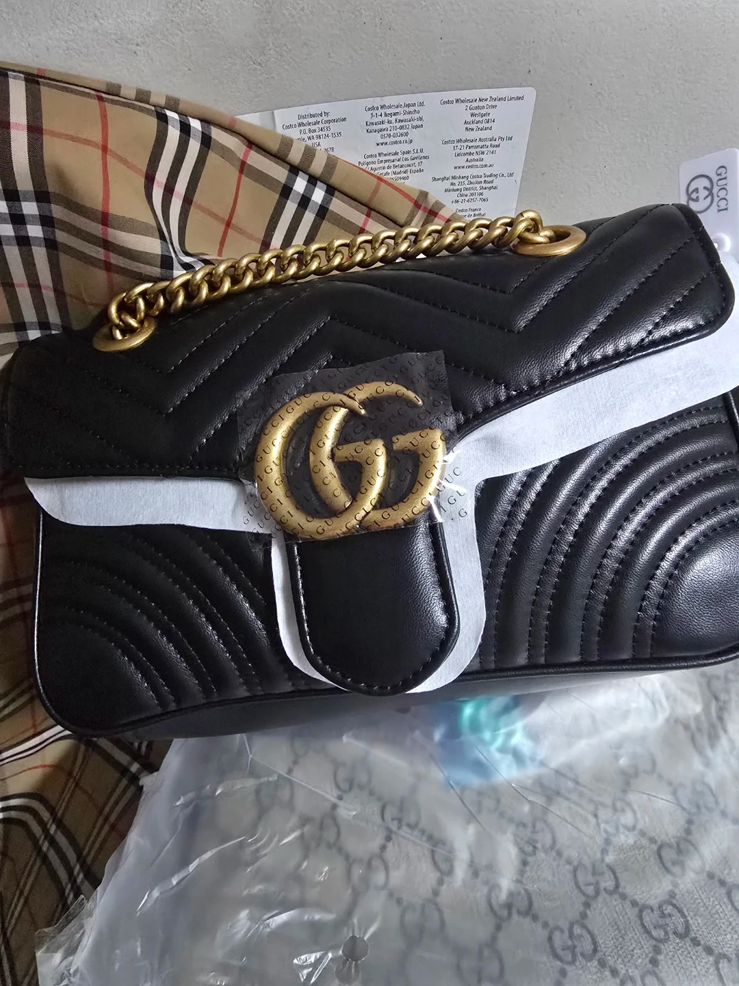 Selling a beautiful Gucci GG Marmont shoulder bag in black leather. It features the iconic GG logo and a stylish chain strap. This bag is in great condition and ready for a new owner!