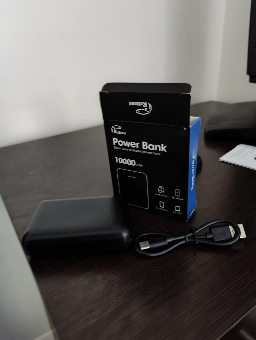 Krizan smart wear dedicated power bank with 10000 mAh capacity. Includes original box and charging cable. This power bank is for mobile devices like phones and tablets.