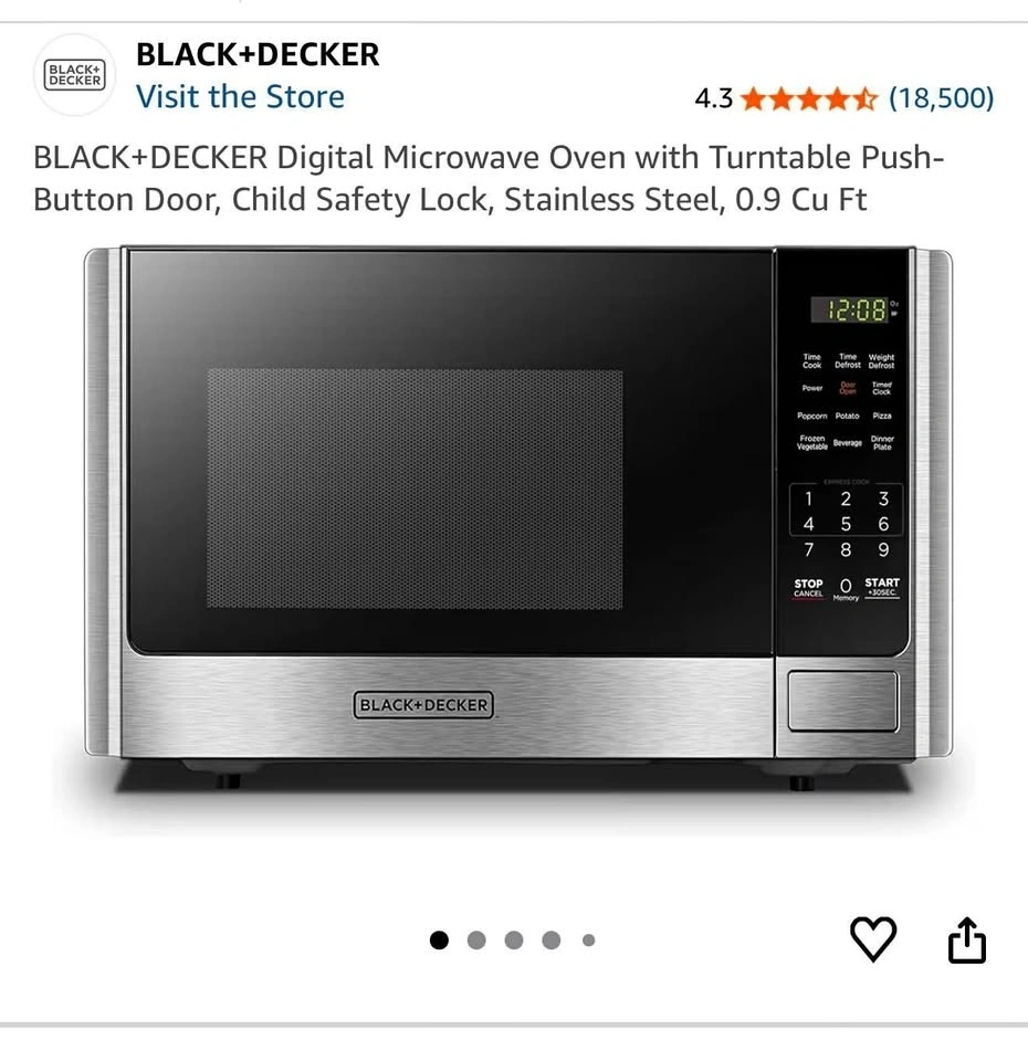 Selling a BLACK+DECKER Digital Microwave (0.9 Cu Ft) in excellent working condition. It's clean and well maintained.