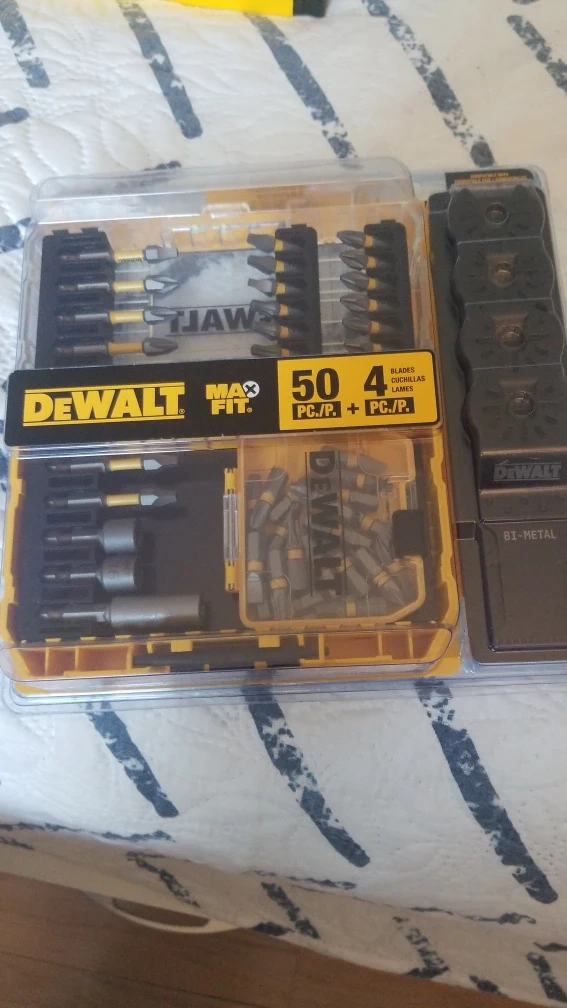 Selling a brand new DeWalt MAX FIT 50-piece screwdriver bit set! It includes 50 pieces and 4 blades. Perfect for any DIY project or professional use.