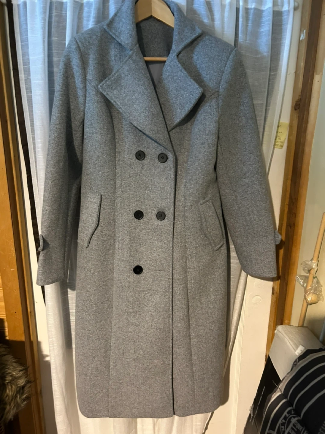 Women's Grey Double-Breasted Wool Blend Coat