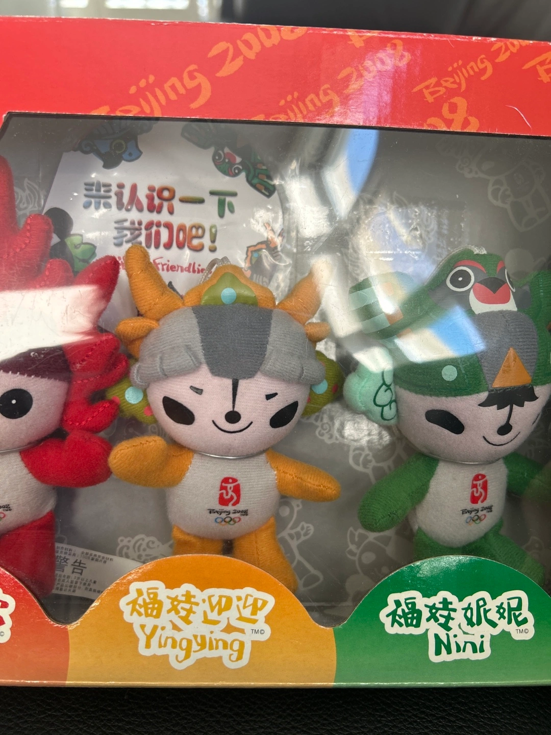 Selling a complete set of the Beijing 2008 Olympic mascots! These adorable plush figures are brand new and still in their original packaging. A great collectible for any Olympics fan!