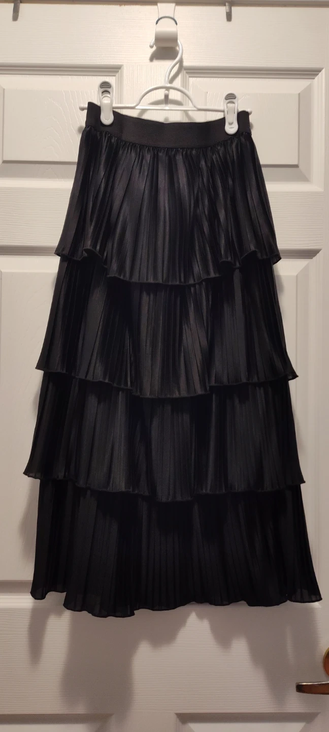 Buy & SellBlack Tiered Pleated Maxi SkirtBlack Tiered Pleated Maxi Skirt$15Black tiered maxi skirt. Pleated design with an elastic waistband. Shiny fabric material.ConditionGoodSizeS/MWHERE TO MEETYonge and FinchView MapSELLEROliviaFinch1000+170 reviews0 chats·1 favorites·17 viewsSEND CHAT TO SELLERHi Olivia! I’m interested in your listing.Hi Olivia! I’m interested in your listing.Get the Karrot app to chatSign In to chat