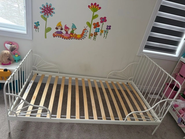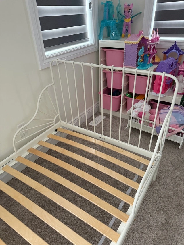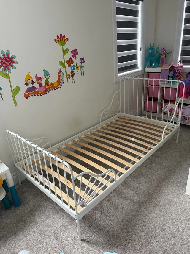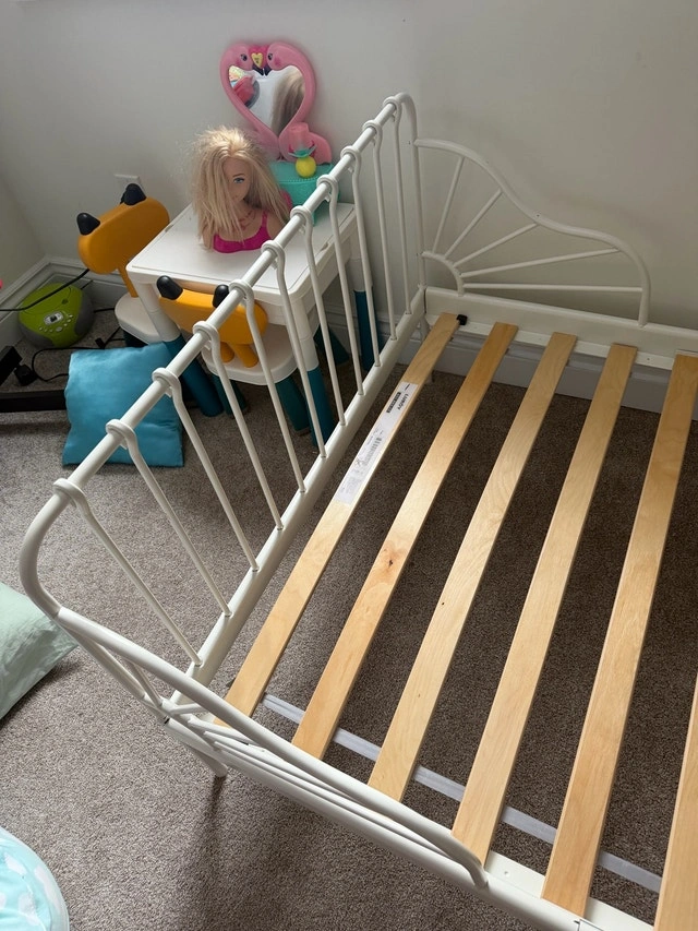 Twin Bed Frame with Slatted Base - White
