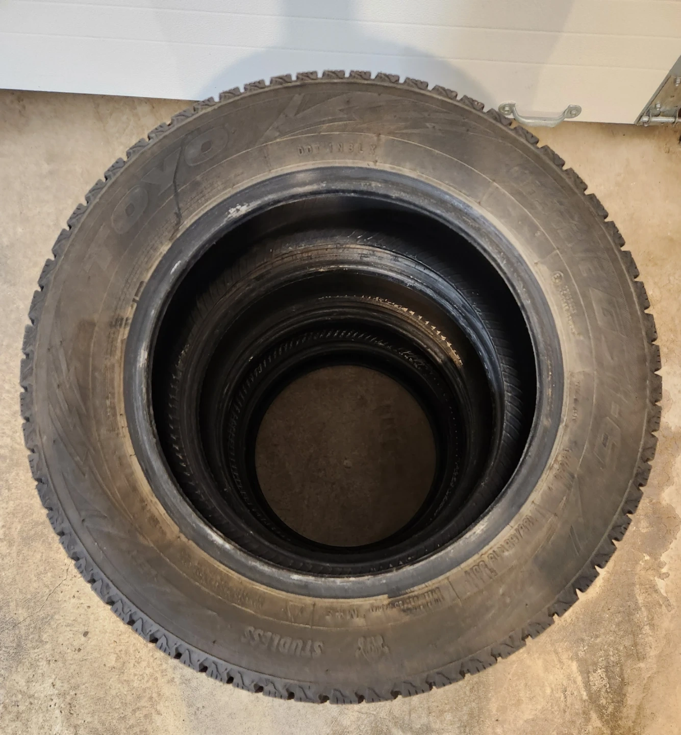 Four Toyo Observe GSi-5 winter tires for sale. Size is 185/65R15, with a load index of 88H. These are studless winter tires.
