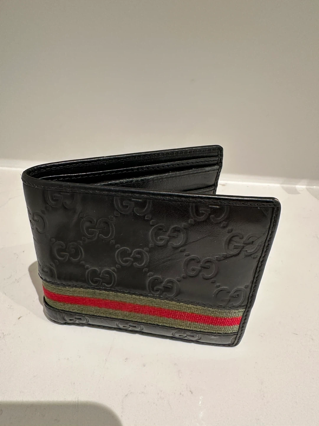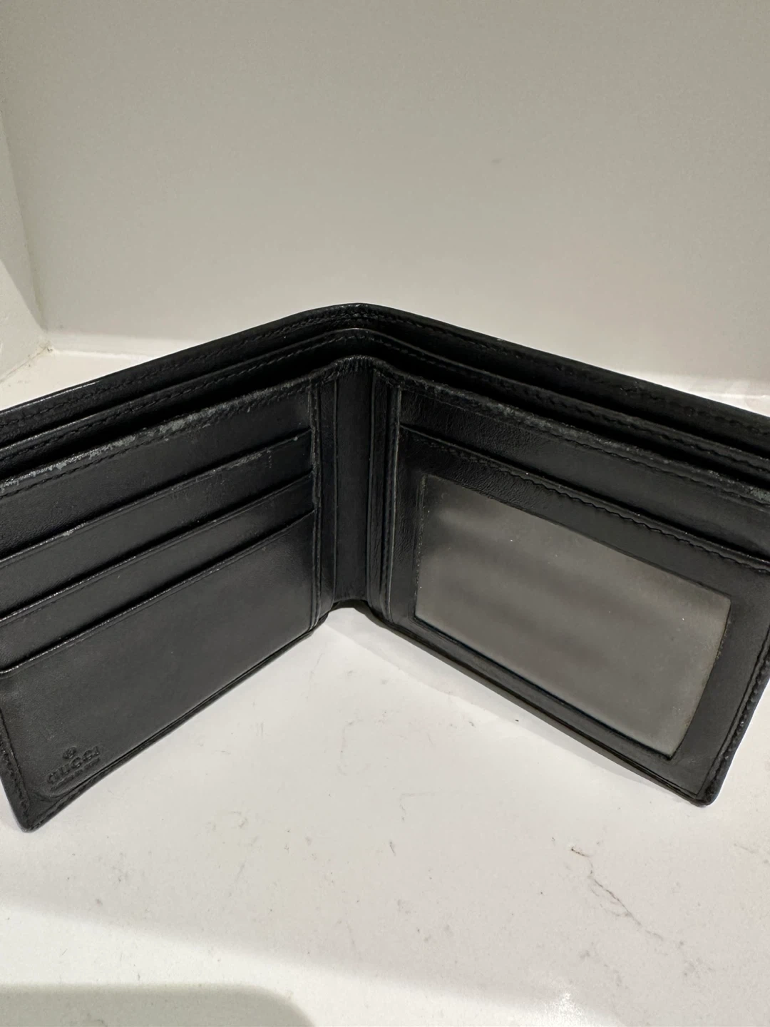 18Selling a Gucci black leather wallet. It has some wear and tear inside. Please see the photos for details!