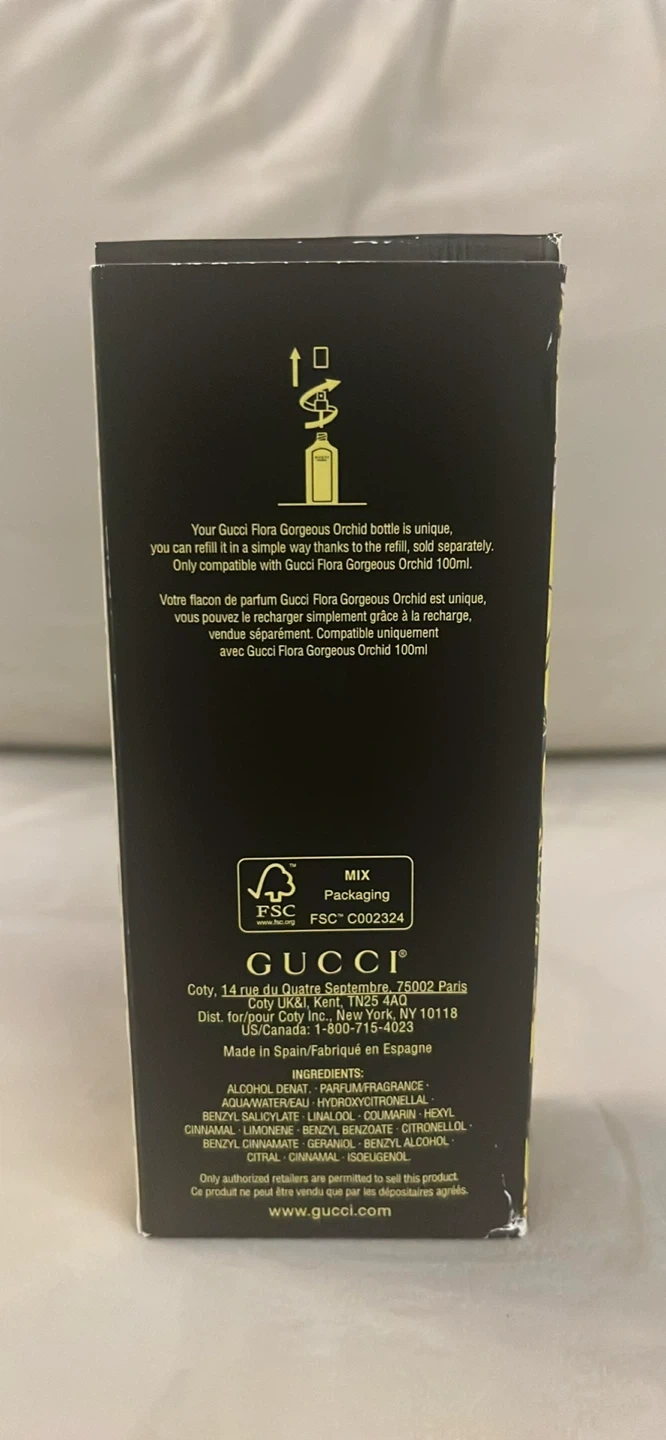 15Selling a Gucci Flora Gorgeous Orchid perfume. It contains 100ml or 3.3 FL.OZ. It is refillable. Some wear on the box from being left in a cabinet for a couple months but bottle is in perfect condition, and perfume was sprayed maybe once or twice so it’s completely full. Price negotiable