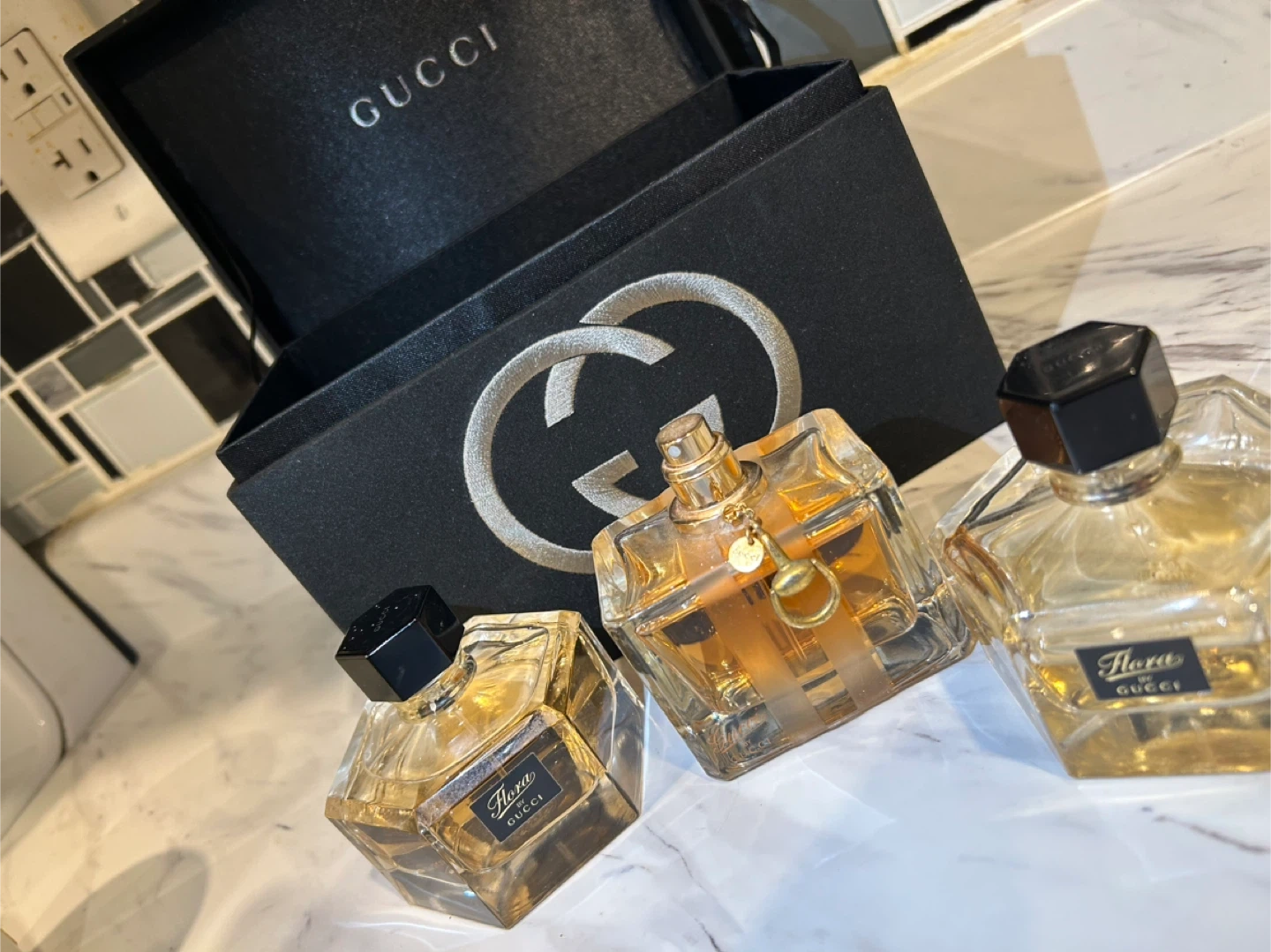 18Selling a beautiful set of Gucci Flora perfume! It comes with the original box, perfect for gifting or treating yourself. The fragrances are lovely and have been well taken care of Great set comes with box